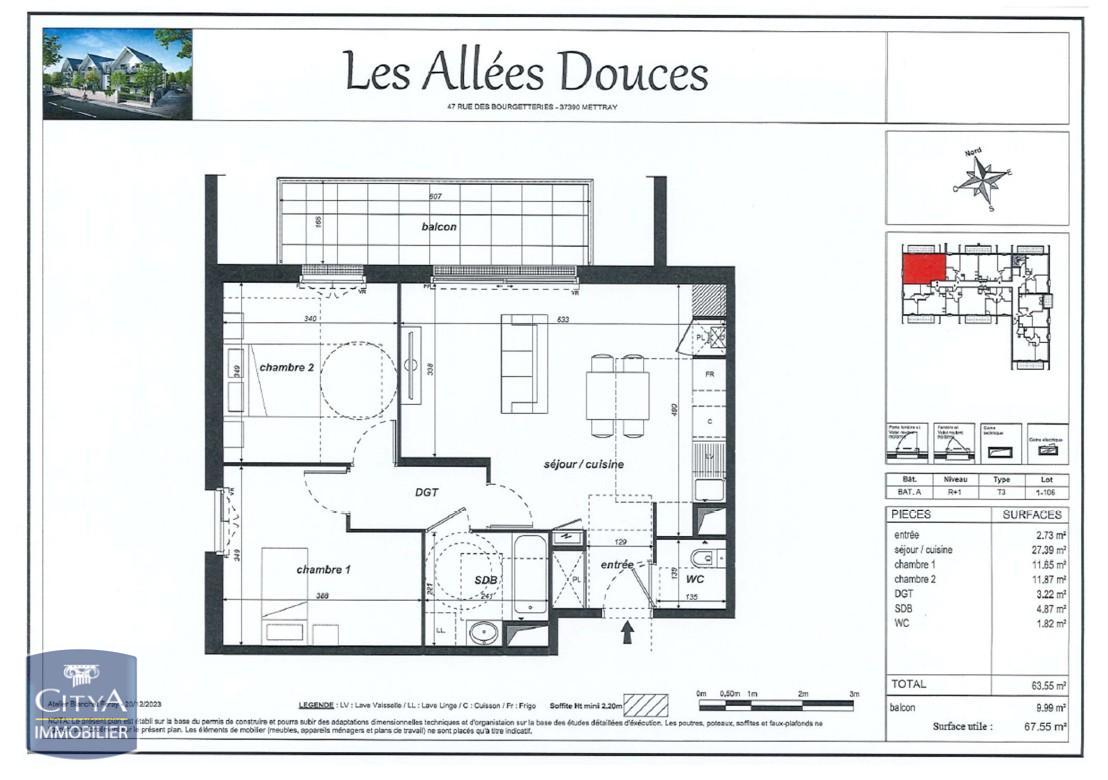 À LOUER - Sans frais d'agence : Appartement neuf T3 situé à Mettray, dans le département de l'Indre-et-Loire (37390). Ce bien moderne offre une superficie de 63 m², idéal pour un couple ou une petite famille. L'appartement se compose de trois pi...