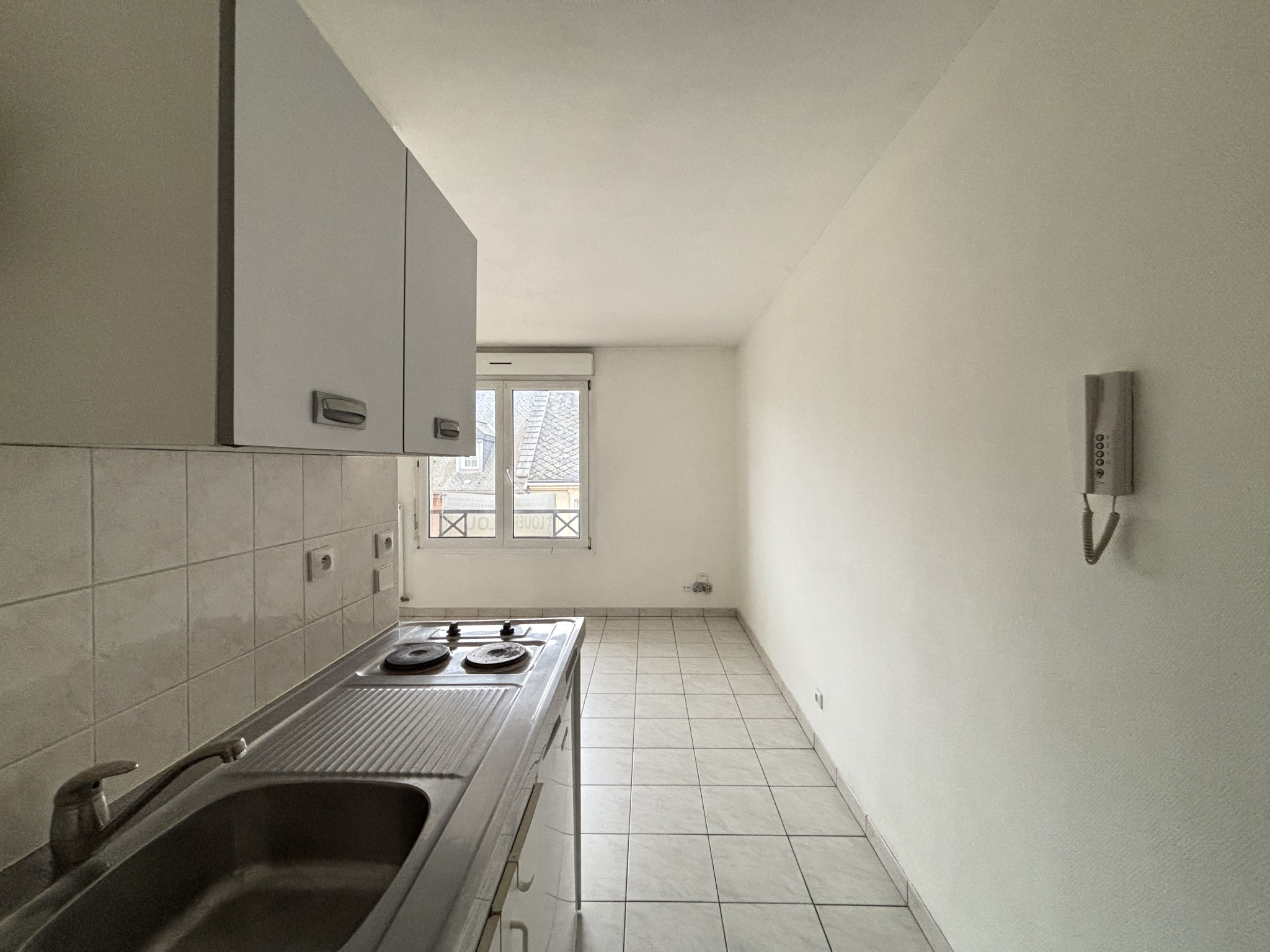 Au 2ème étage, ce logement se compose d'une entrée avec placard, d'un espace kitchenette (plaques de cuisson 2 feux) ouvert sur séjour et d'une salle de bains avec WC....