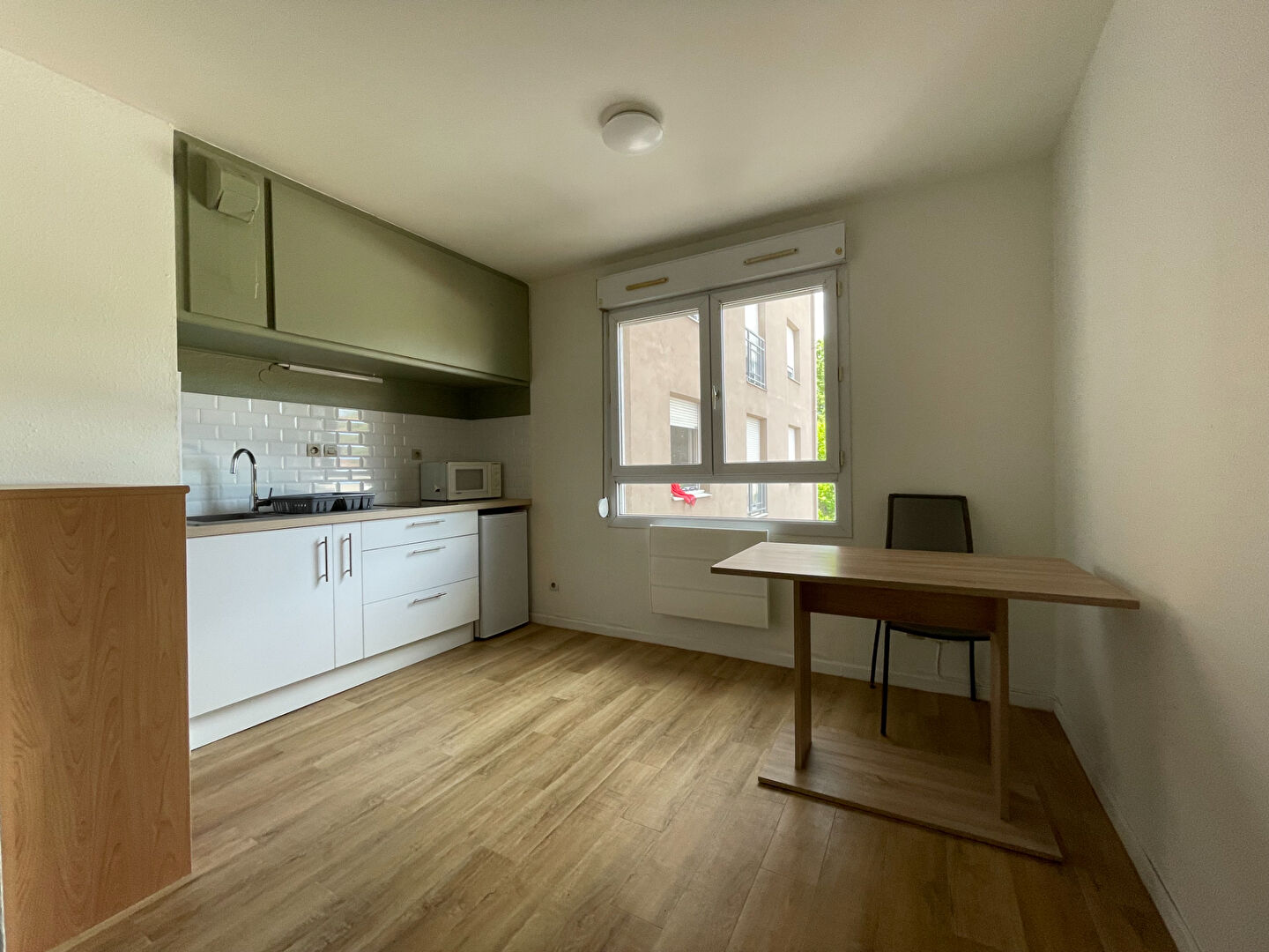 Proche gare, centre Pompidou et toutes commodités, dans résidence sécurisée, beau et lumineux F1, fonctionnel, entrée avec placards, kitchenette équipée.