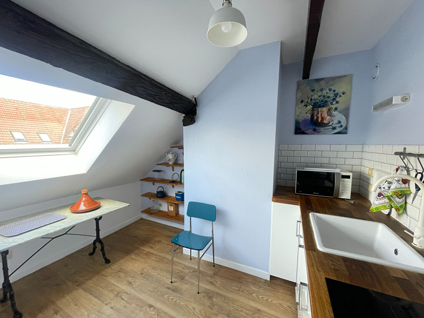 Appartement de type F1 bis dans petit immeuble bien entretenu et entièrement rénové composé d'une cuisine ouverte aménagée et équipée (éléments meublants, hotte, plaque de cuisson, four), d'un séjour, d'une chambre avec...