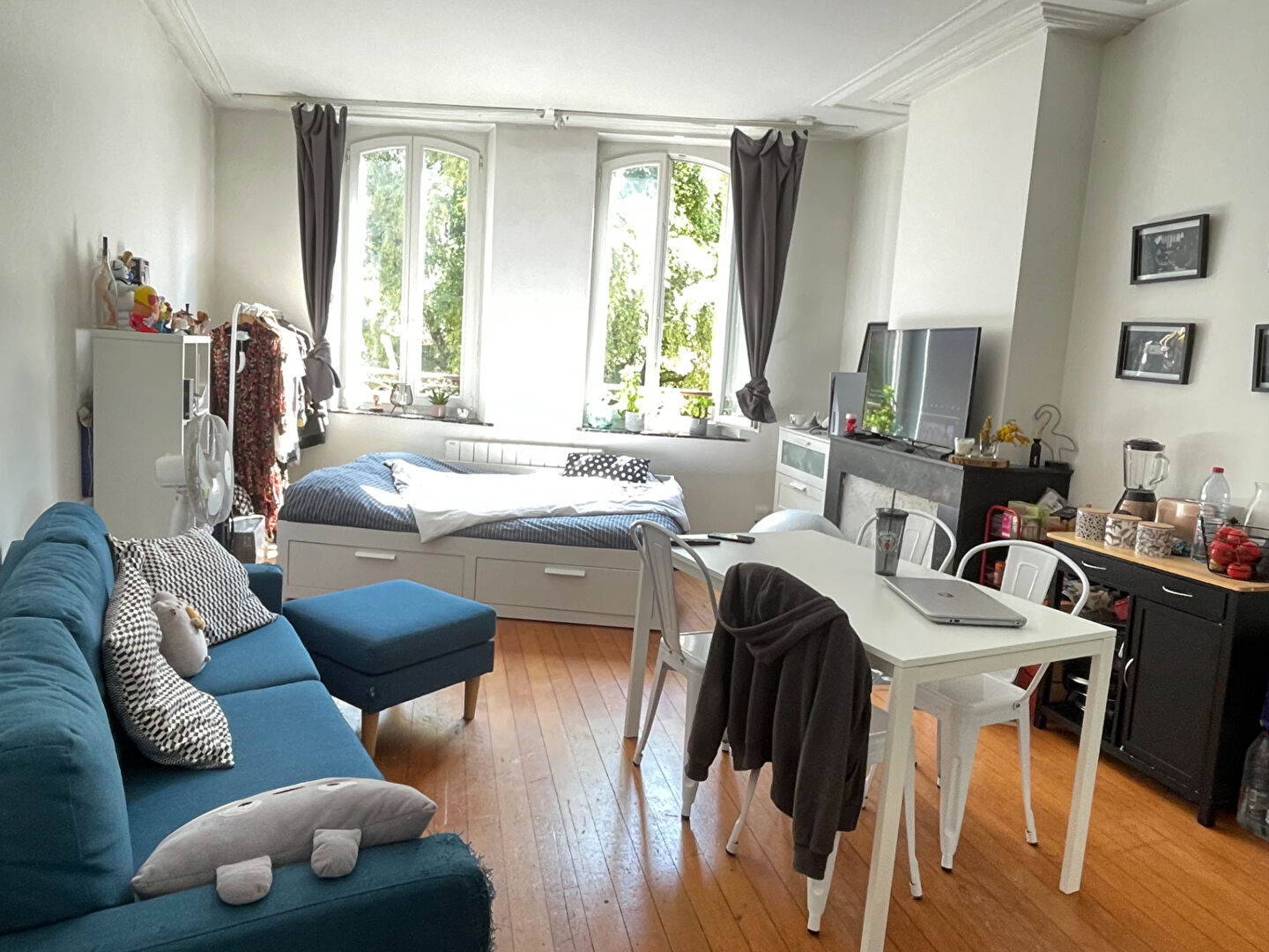 A SAISIR! Dans immeuble de caractère à 10 minutes de la Gare, beau et lumineux F2 traversant de 48 m2 au 2ème étage, comprenant un séjour, une chambre, cuisine équipée séparée accès balcon, salle de bains avec WC. Ce logement préserve le cachet de l'ancie...