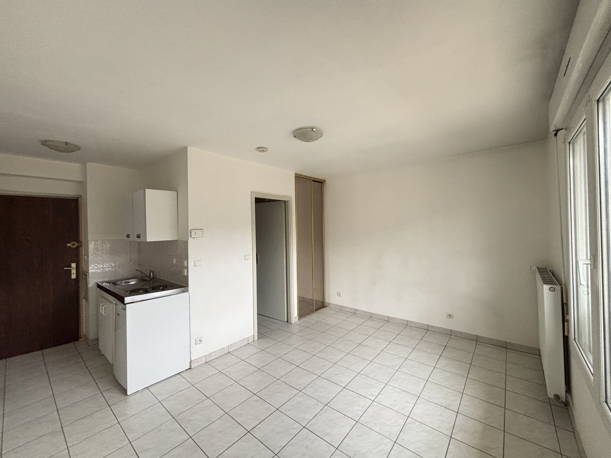 au 1er étage avec ascenseur, cet appartement se compose d'une entrée avec placard, d'un espace kitchenette (frigo et plaques de cuisson) ouvert sur séjour et d'une salle de bai...