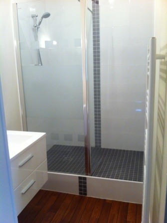 Séjour avec coin-cuisine aménégé-équipé, dégagement avec placard, 1 chambre, salle d'eau, wc. Jardin commun.