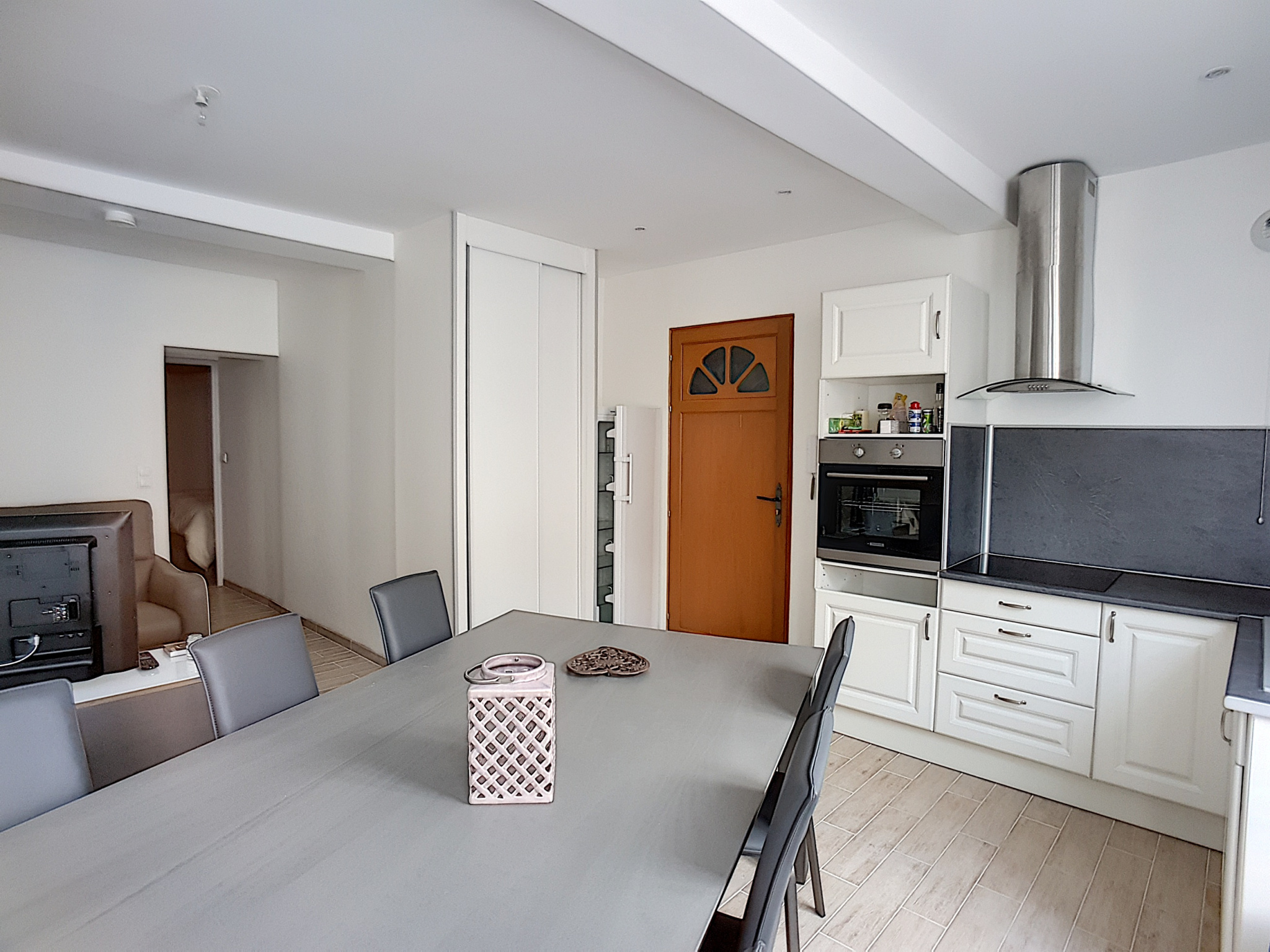 Avec : entrée, cuisine ouvert...
