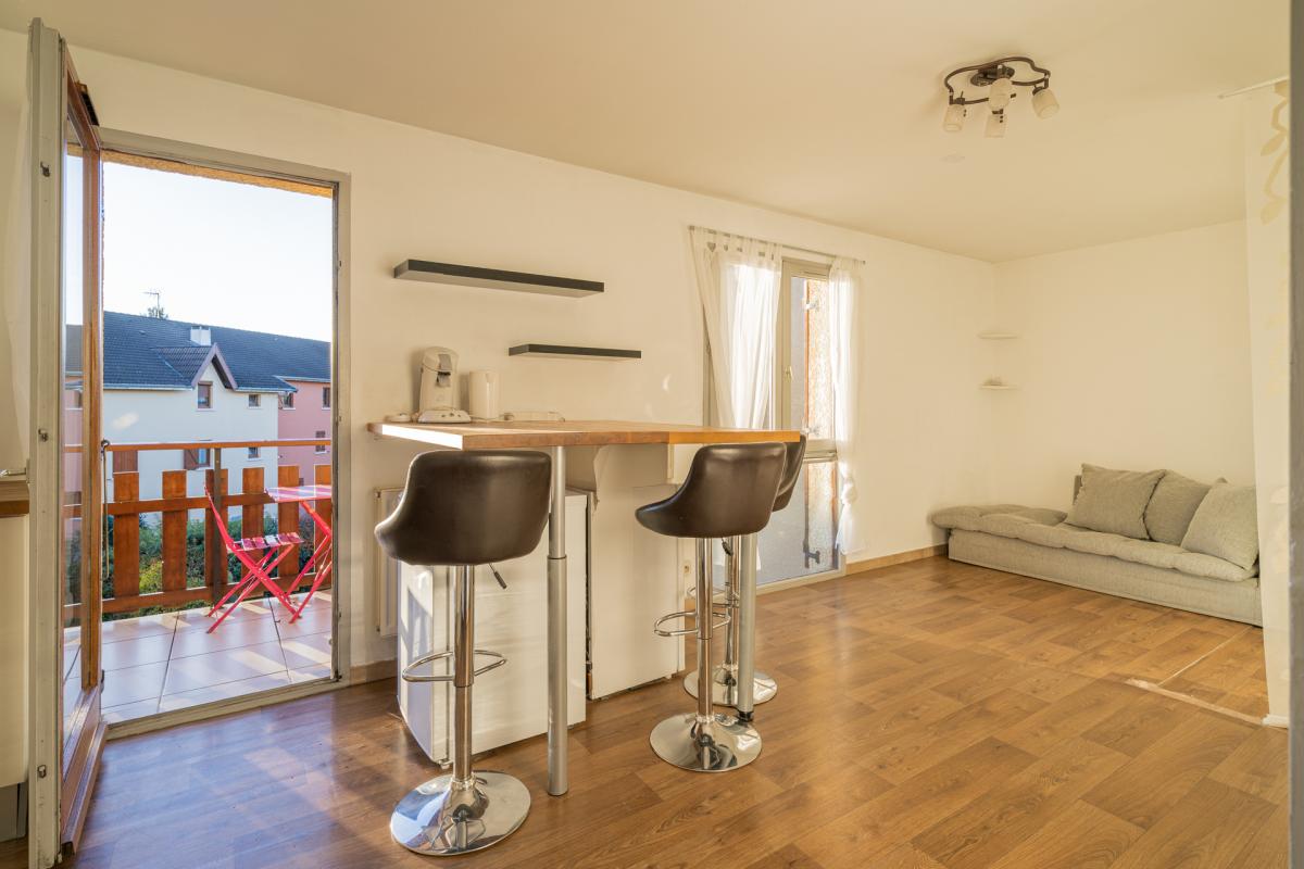 MEYTHET, appartement de type T2 en rez de jardin comprenant une entrée avec placard, un séjour avec cuisine ouverte donnant sur une terrasse, une chambre, une salle d'eau et un wc séparé. Un cellier et deux places de stationnement en sous sol. Chauffage e...