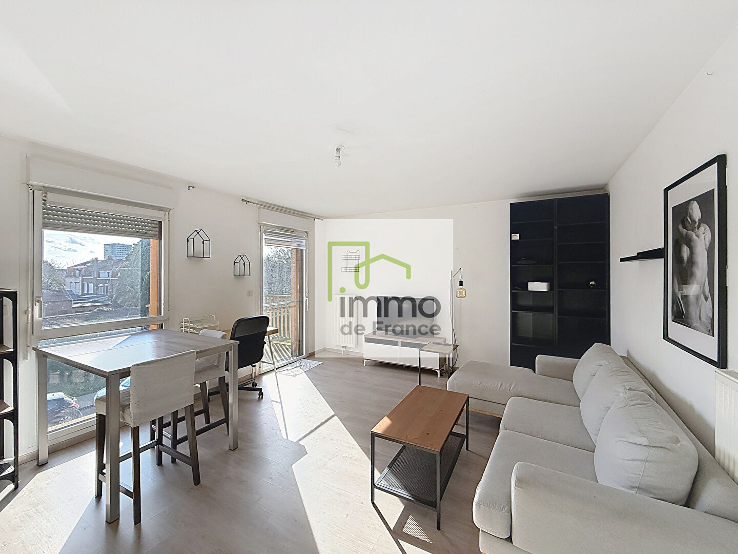 A louer, T3 MEUBLE de 76.33m² situé en résidence sécurisée. Ce logement à la limite Lille/Mons en Baroeul, se compose d'une entrée, un séjour, une cuisine équipée, deux chambres, une salle de bain, buanderie, wc séparé. Un balcon bien exposée et un garage...