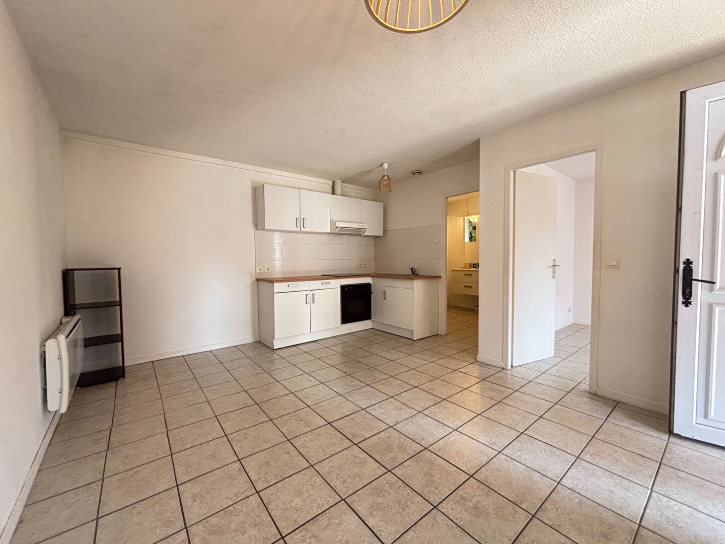 A louer, appartement T2, en rez-de-chaussée, composé d'une pièce principale avec cuisine US, 1 chambre, et une salle d'eau avec wc.