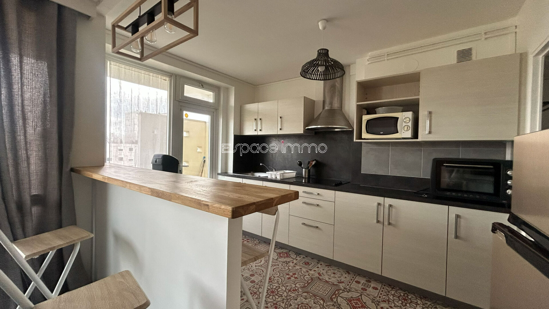 Bel appartement F3 meublé offrant de beaux volumes et une belle luminosité. Il se compose d'une entrée, d'un séjour agréable, d'une cuisine ouverte aménagée et équipée, de deux chambres, d'une salle de douche et d'un WC indépendant.