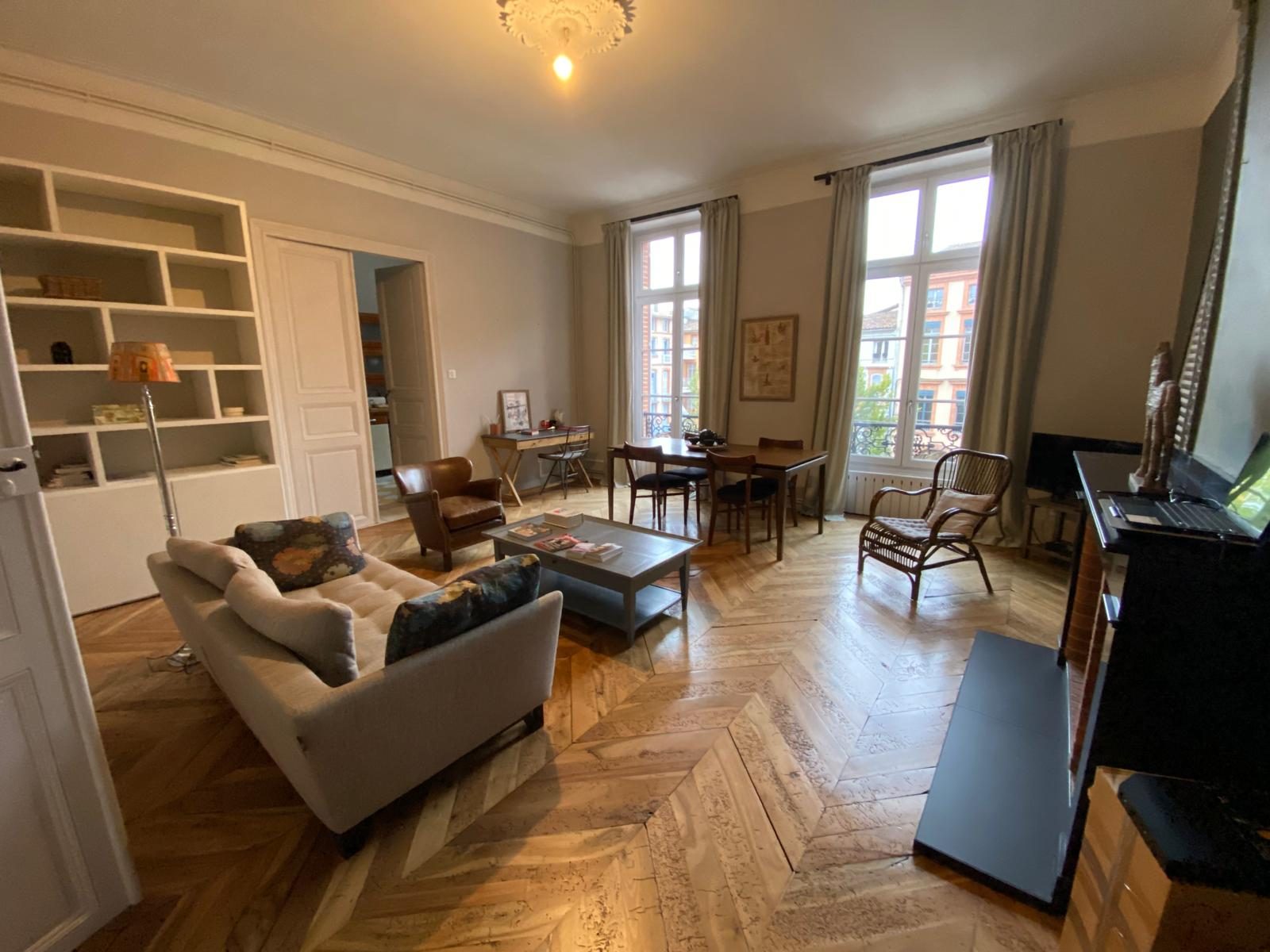 Montauban Centre historique, au 1 er étage appartement comprenant une entrée, une grand séjour de plus de 50m2,un coin cuisine,2 chambres, salle de bains WC.