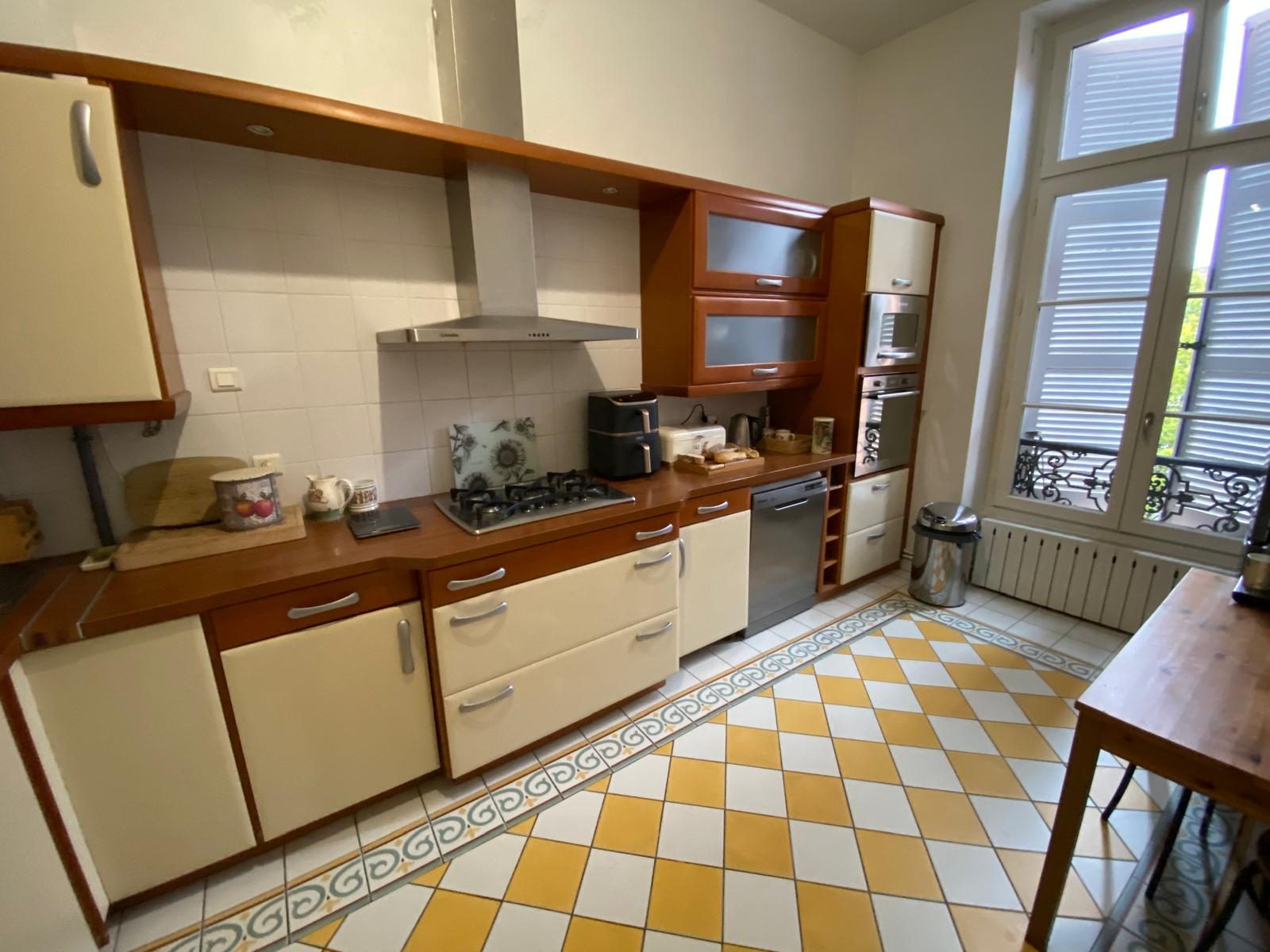 (G) Côté Particuliers vous propose un appartement T3 bis de 105.70m² au 1er étage sans ascenseur comprenant une entrée, un salon-séjour, une cuisine équipée, deux chambres, un bureau, une salle de bains et un wc séparé.