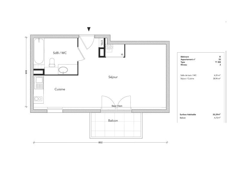 À Louer !Bel Appartement T1 Bis de 35.29 m² Situé au 2éme étage d'une résidence neuve, cet appartement vous séduira par son confort et sa luminosité. Il se compose d'une entrée, d'une agréable pièce à vivre ouvrant sur un balcon de 4,75 m², d...