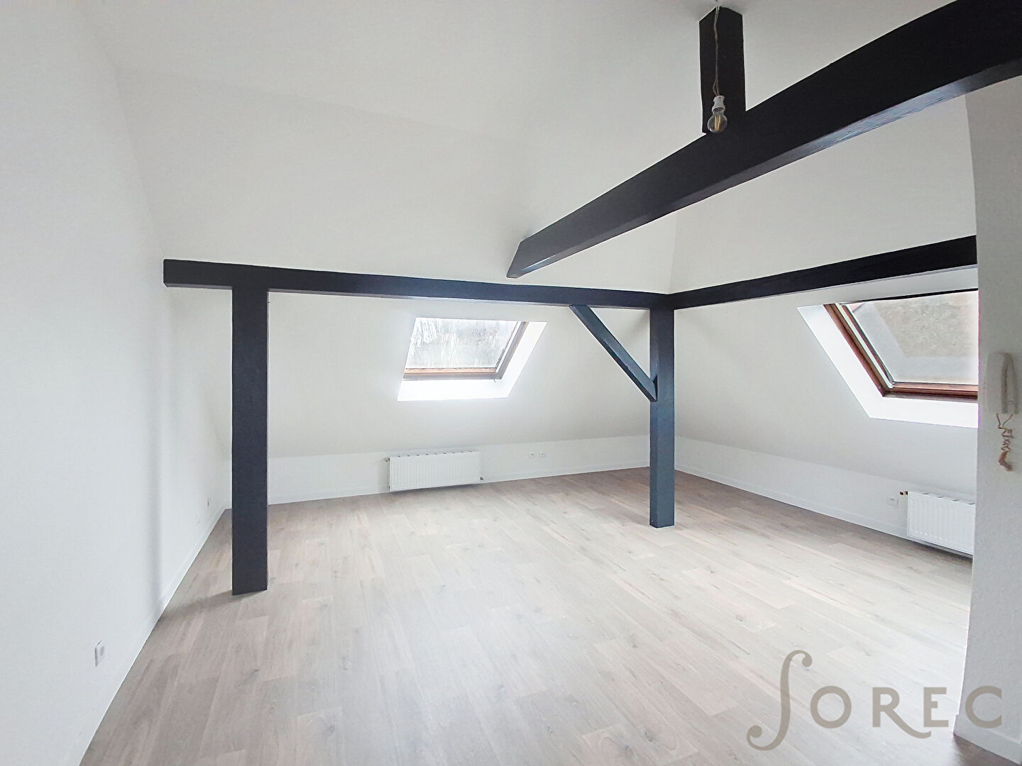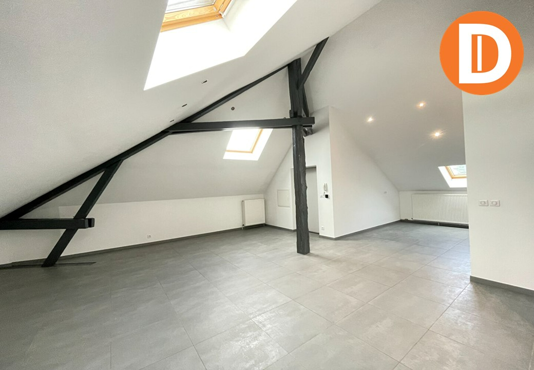 Appartement de type F3 entièrement rénové en combles composé d'une entrée, un séjour, 2 chambres, une cuisine, une salle de bains avec vasque, un WC séparé.