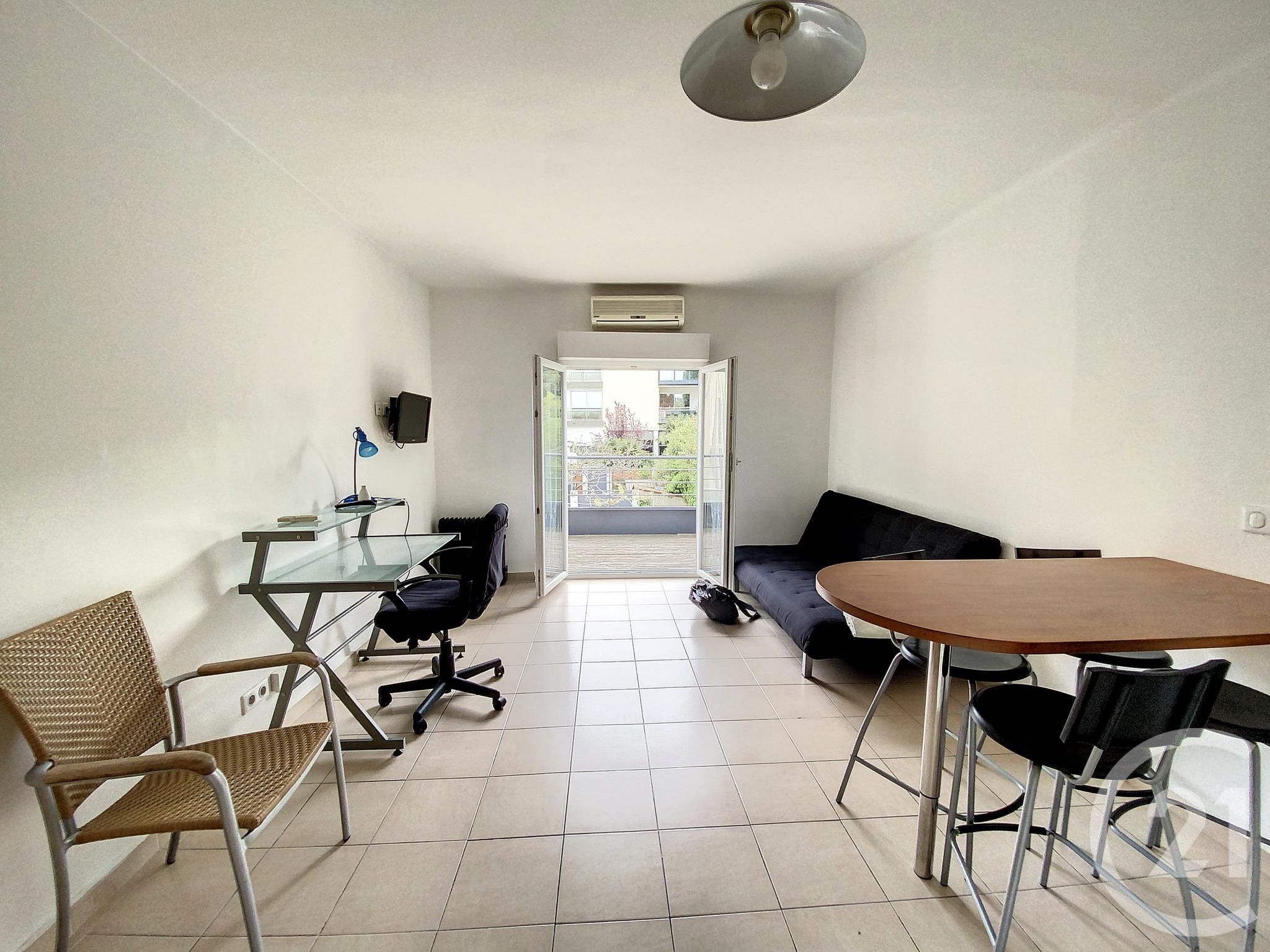 Studio semi-meublé situé en rez-de-chaussée surélevé, comprenant une pièce de vie avec kitchenette, balcon, ainsi qu'une salle de bains avec WC. Climatisation réversible. Laverie collective dans l'immeubl...