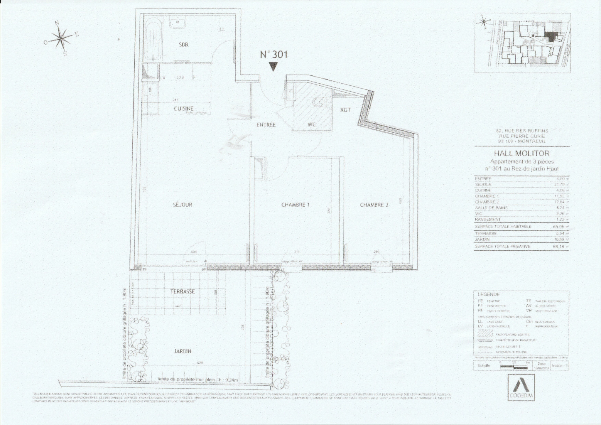 SERENO vous propose un quatre pièces de 109 m2 habitable comprenant :