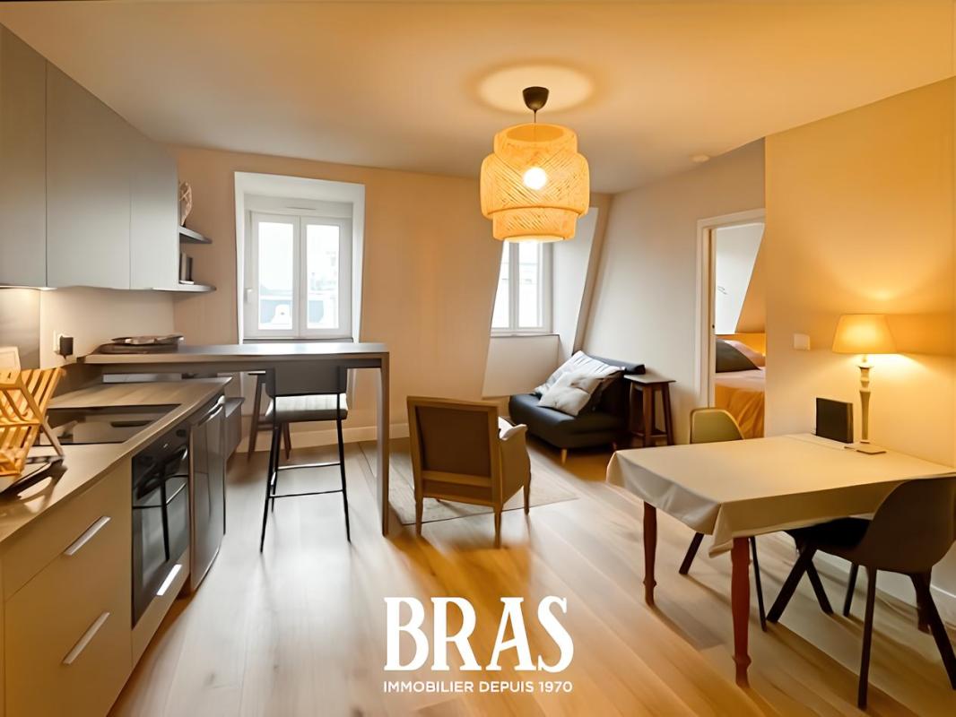 ? Découvrez ce charmant appartement T2 en plein centre-ville, entièrement meublé, situé au premier étage d'un immeuble de caractère du XVIIe siècle (1650). Avec ses 47,81 m², il marie à merveille le cachet de l'ancien et le confort moderne.