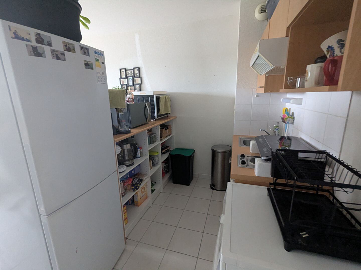 Belle vue dégagée pour ce deux pièces terrasse, orienté sud ouest, composé d'une entrée avec dégagement (placard), séjour ouvert sur coin cuisine aménagée, équipée (...