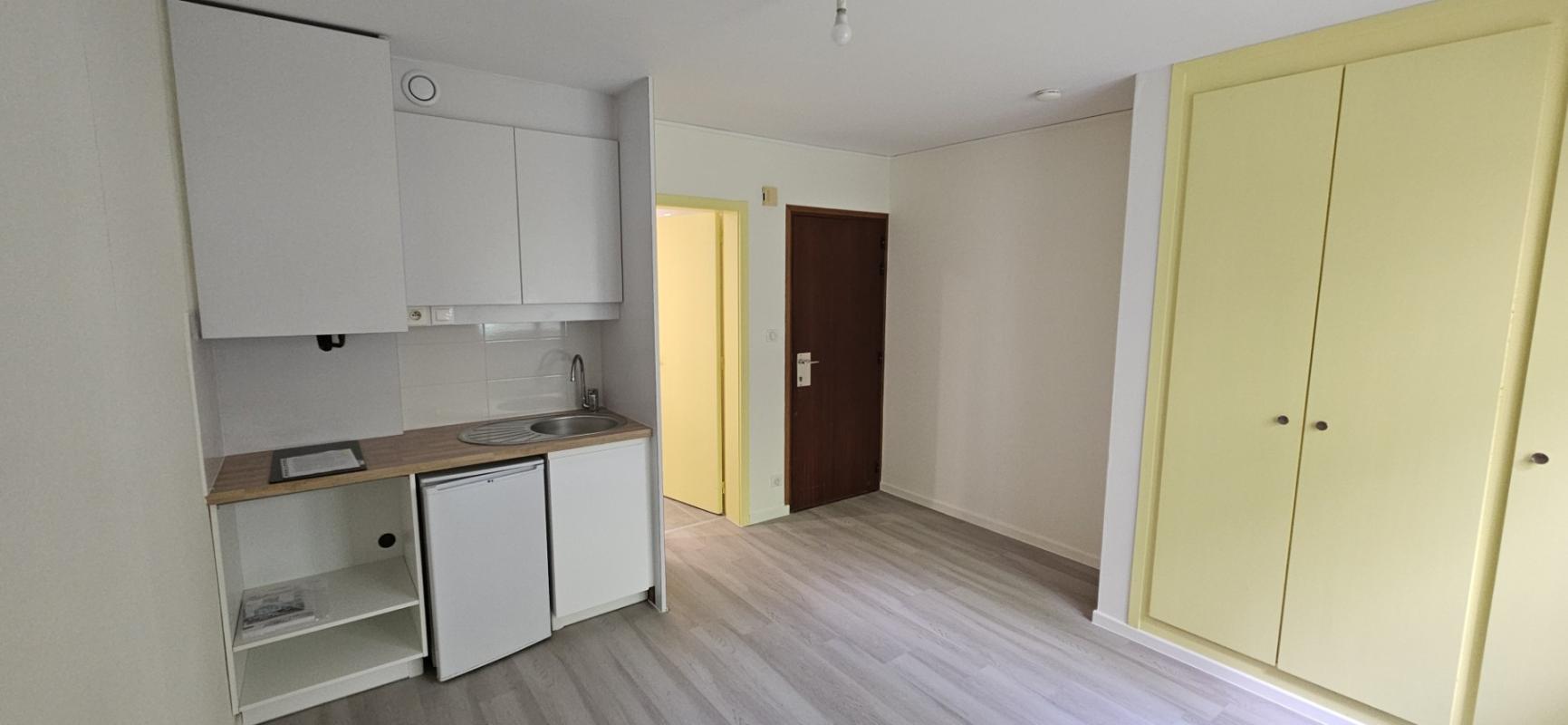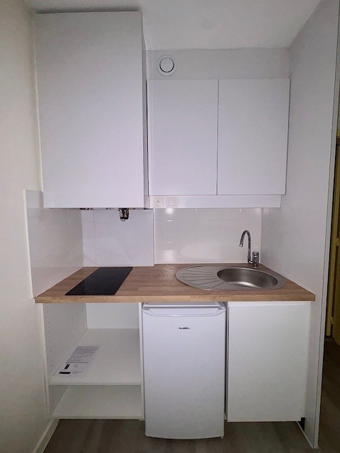 Appartement rénové comprenant une Cuisine Equipée (Plaques de Cuisson + Réfrigérateur) ouverte sur la Pièce Principale avec Placard et une Salle d'Eau avec WC.