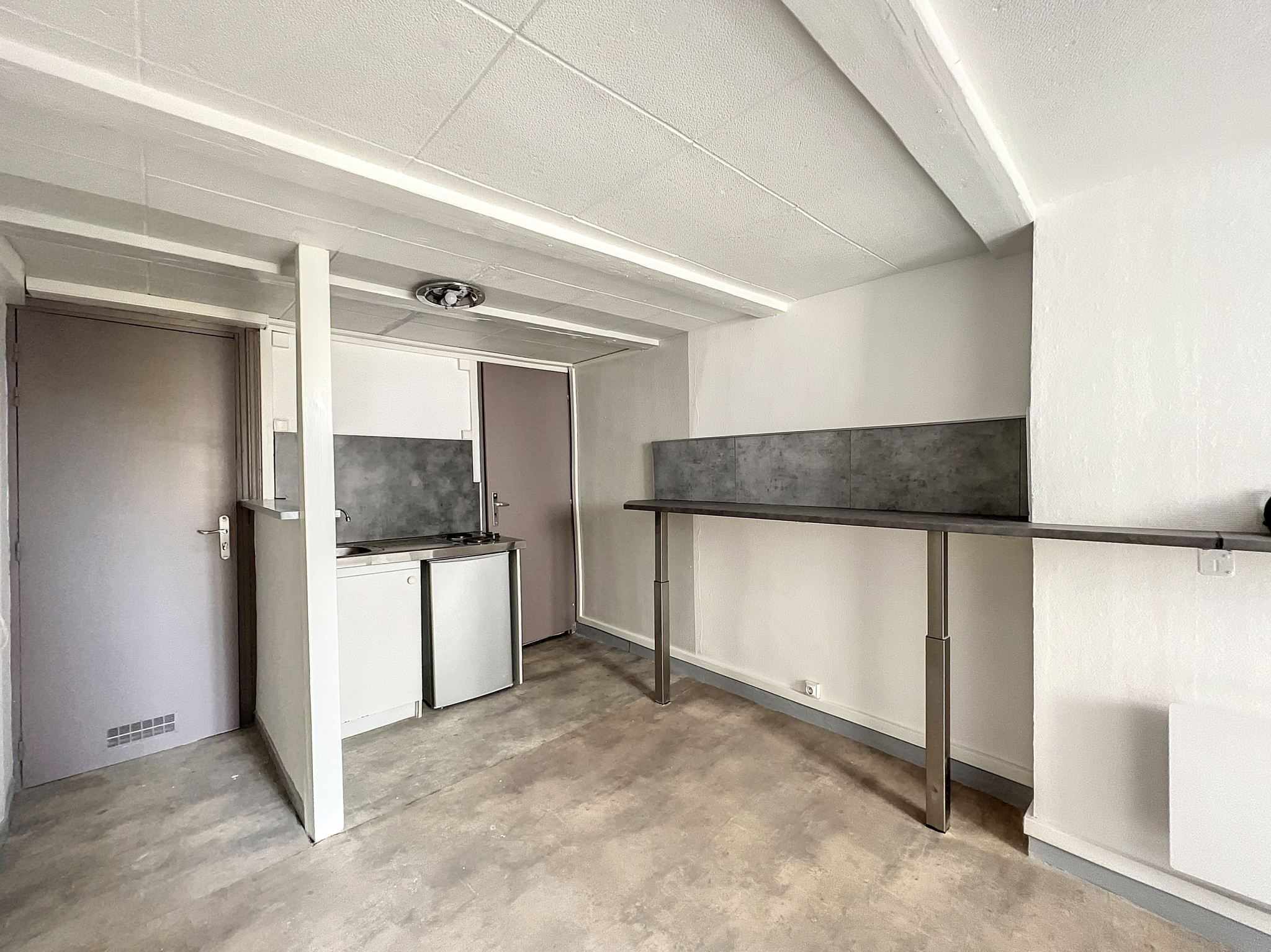Appartement rénové comprenant une Cuisine Equipée (Plaques de Cuisson + Réfrigérateur) ouverte sur la Pièce Principale avec Placard et une Salle d'Eau avec WC.