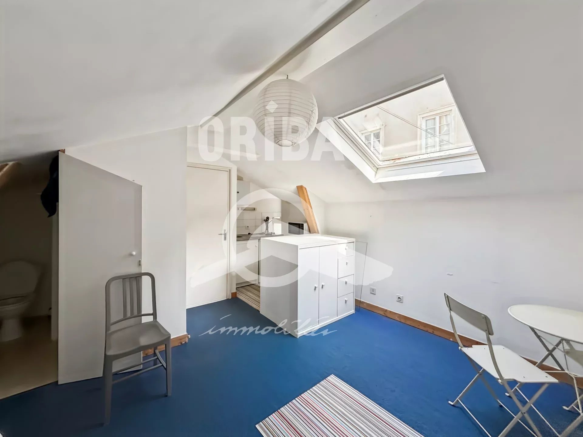 Dans une copropriété calme, avec vue dégagée, un studio meublé de 16m² en loi Carrez, comprenant : pièce de vie avec coin k...