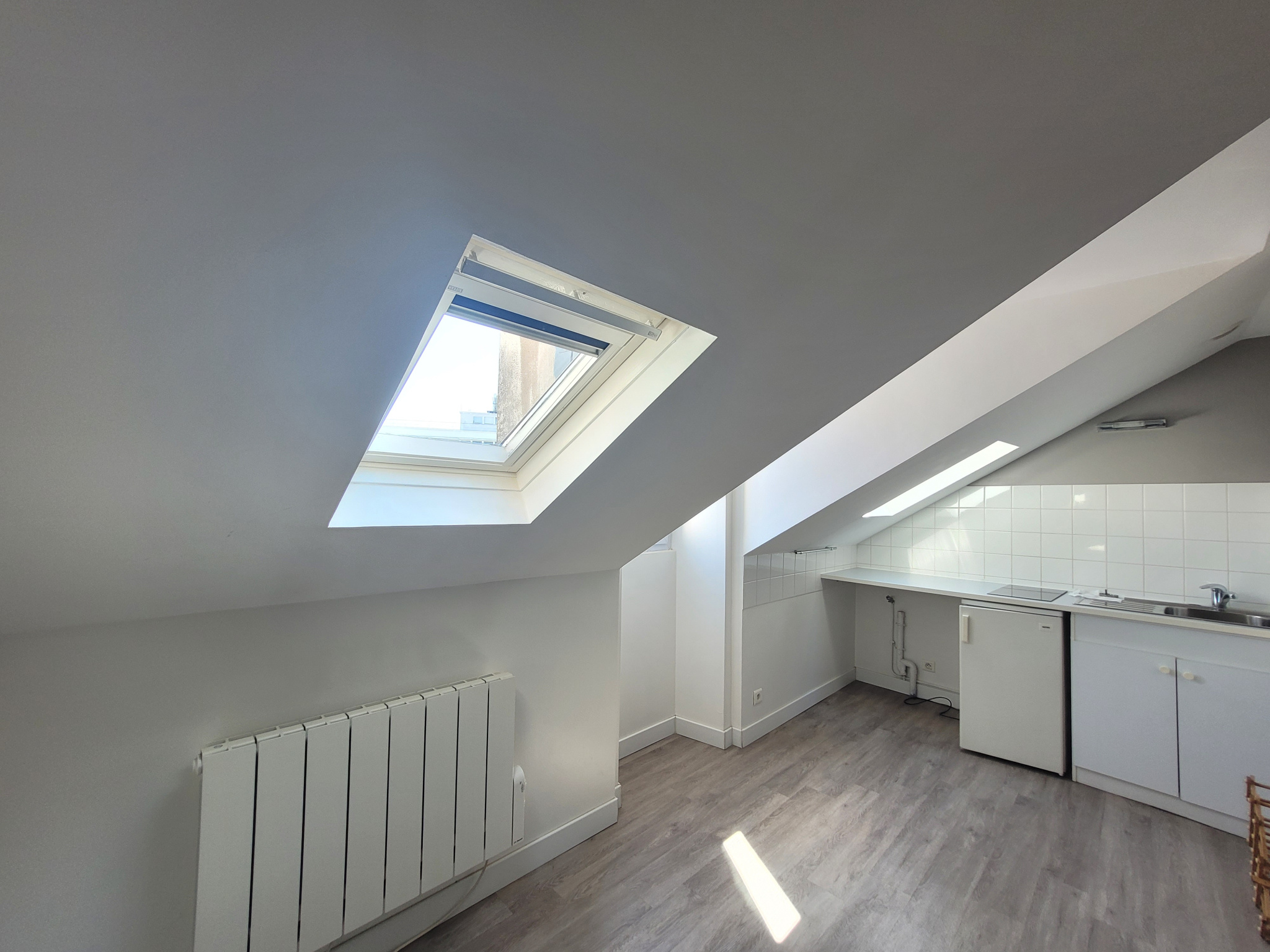 Au 4ème et dernier étage d'un immeuble de caractère, appartement de type 1 bis très lumineux comprennent entrée, cuisine, salle d'eau avec WC et chambre avec placard.
