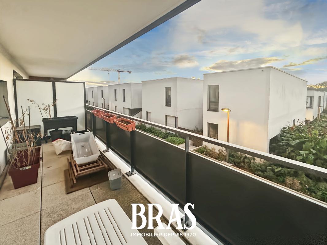 NANTES - QUARTIER HIPPODROME- Appartement de type 2 composé d'une entrée, d'un séjour de 30.51 m² avec coin cuisine aménagé et équipé (plaque et hotte), donnant sur terrasse de 5.82 m², une chambre avec placard, salle d'eau avec wc. Parking co...