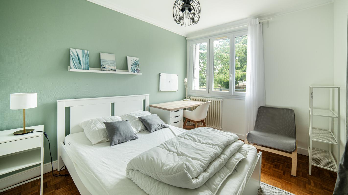 Chambre en colocation dans un appartement meublé de 77.14 m², au 4ème étage dans un immeuble rue de l'Hippodrome à Nantes, près des lignes de bus C20 et 26 et du tramway ligne 2.