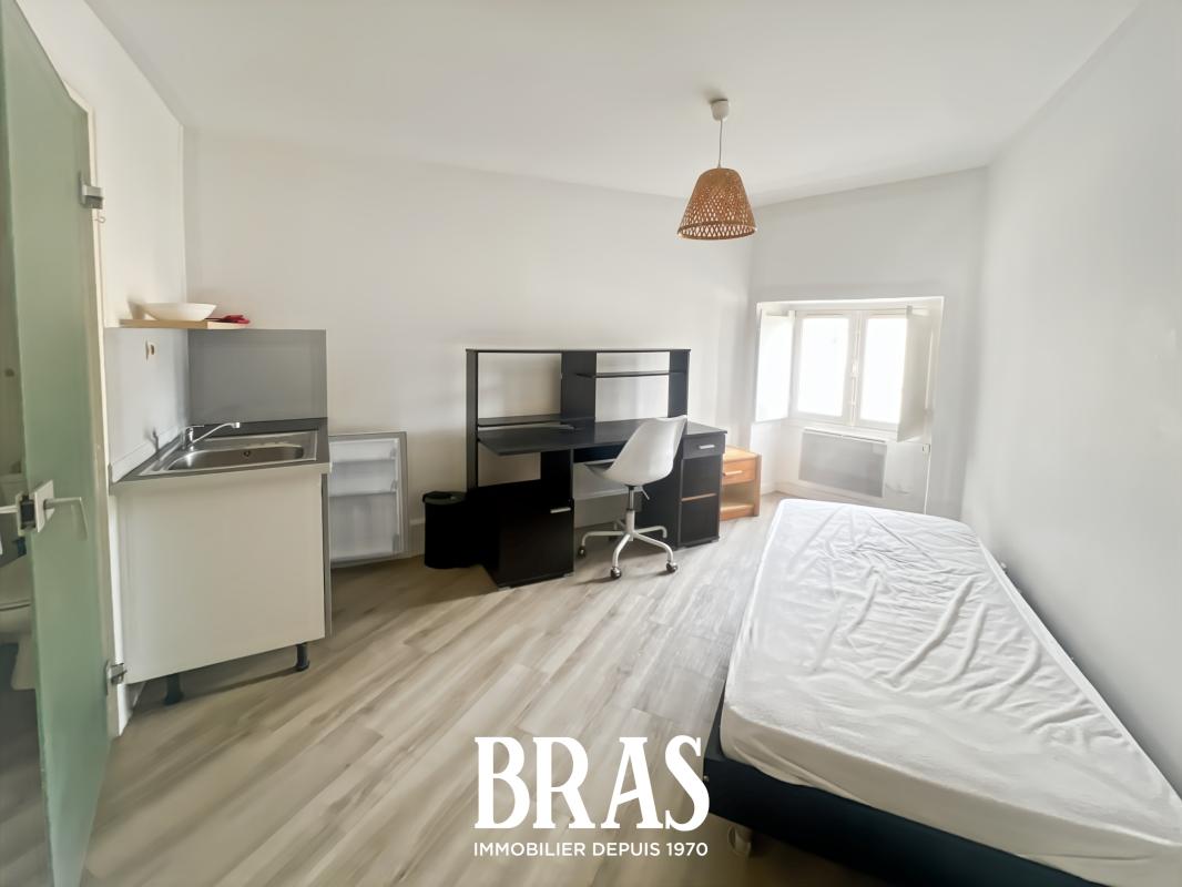 Au 1er étage un logement type studio meublé de 25 m²comprenant une entrée, salle d'eau avec wc, coin cuisine aménagé et équipé, pièce principale avec placard. Résidence étudiante avec services laverie, gardien, garage à vélo. Honoraires locataires 327 € (...
