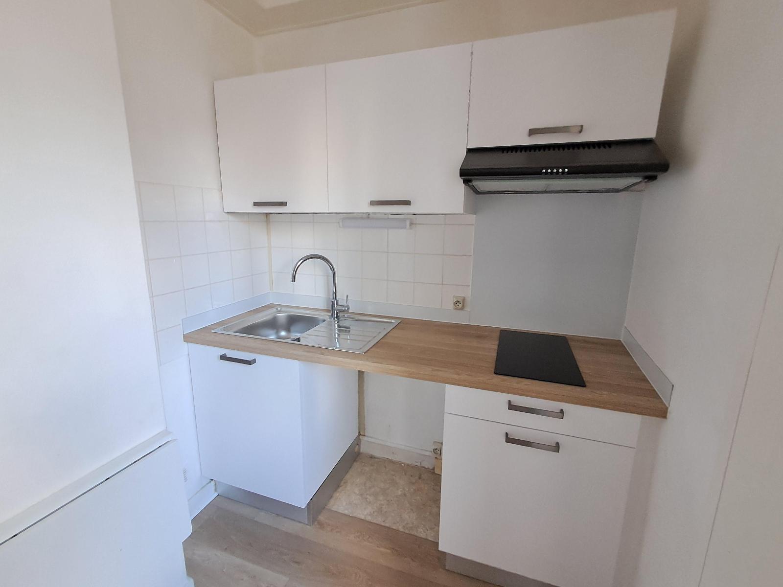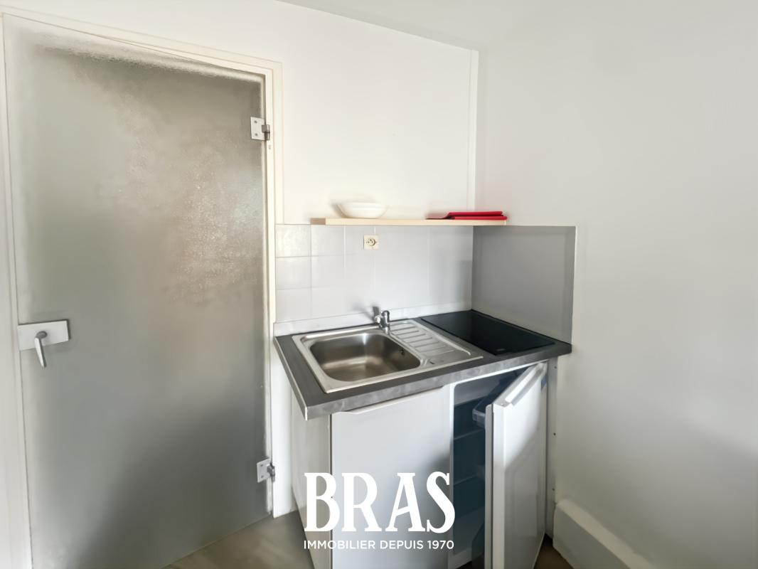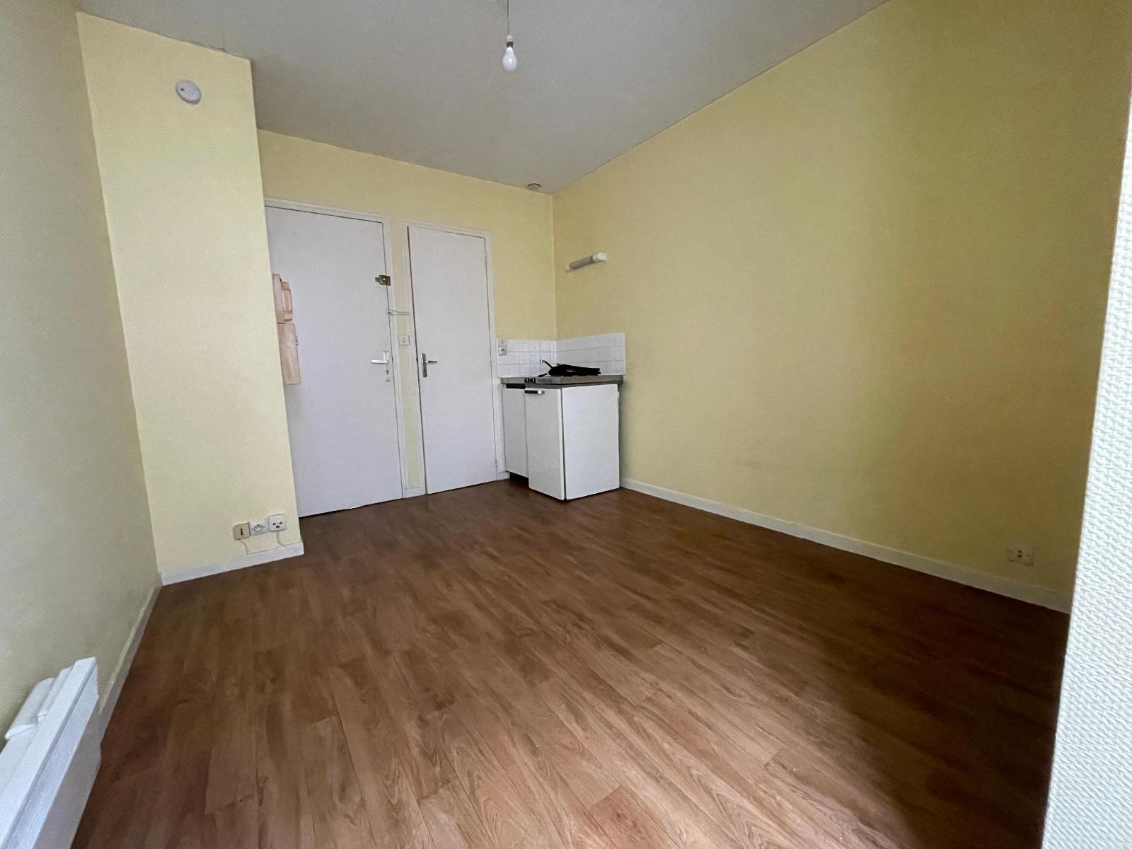 Appartement type studio au 2ème étage sans ascenseur, composé d'une pièce de vie avec rangement, un coin cuisine avec évier, plaques de cuisson et placard, une salle d'eau avec d...