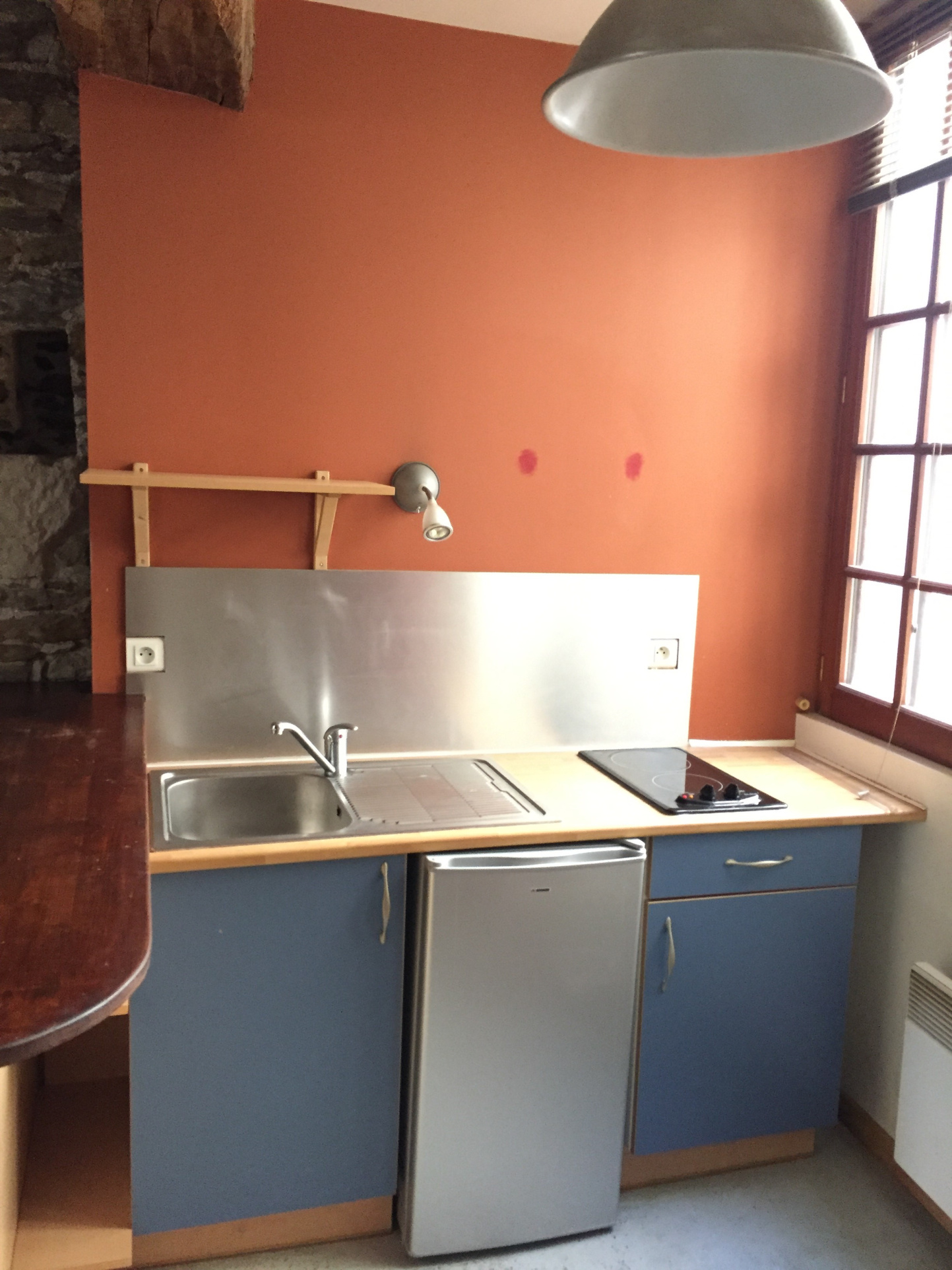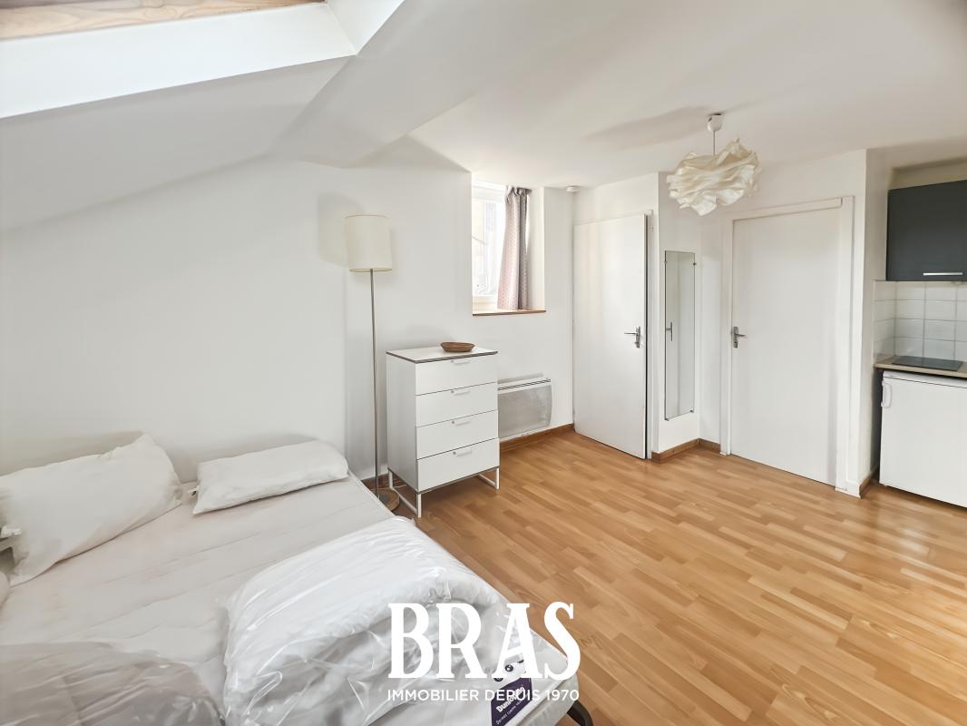 Agréable studio meublé avec parquet, rénové en 2009, idéalement situé au coeur du centre-ville. Il offre une pièce de vie confortable avec coin cuisine équipé (plaque vitrocéramique, hotte, réfrigérateur, micro-ond...