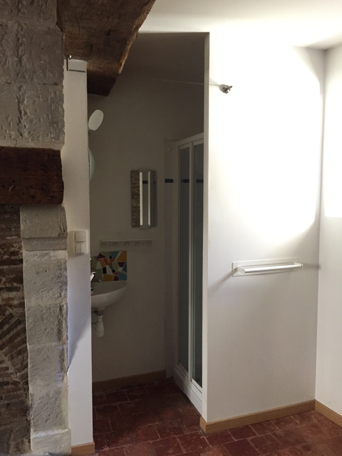 Composé d'une pièce de vie avec kitchenette équipée, et salle de douche ouverte.