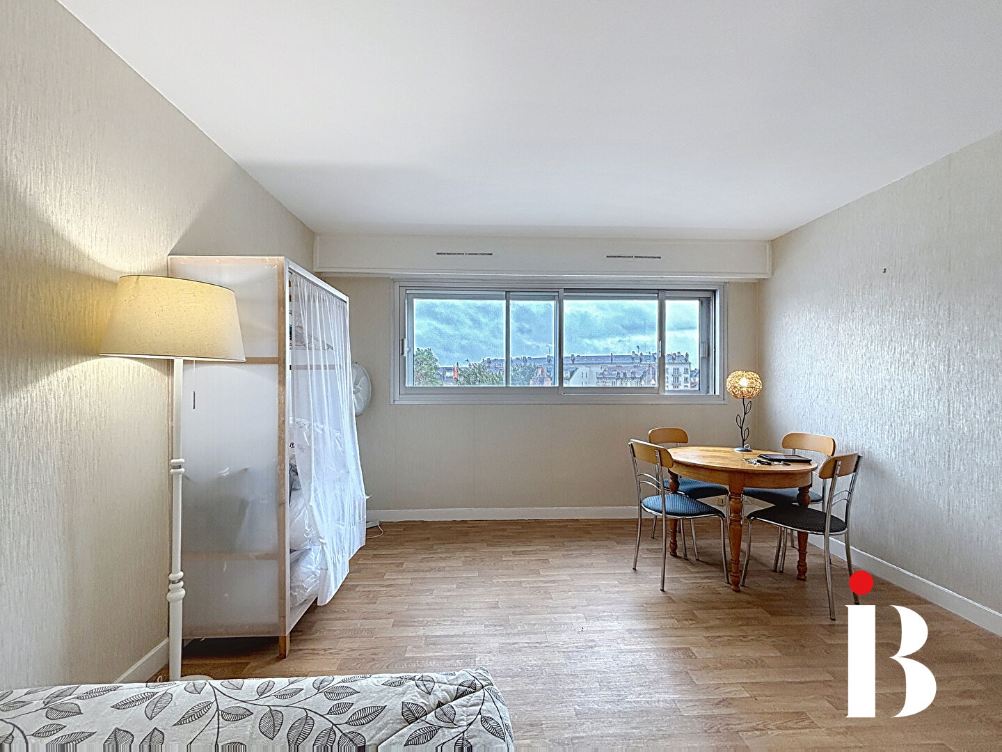 NANTES BD GUIST'HAU - Dans le triangle d'or, dans une résidence de standing, grand studio meublé, dernier étage avec ascenseur offrant : une entrée avec placard, un séjour exposé Est, un coin cuisine aménagée et équipée, une salle de bains avec WC. C...
