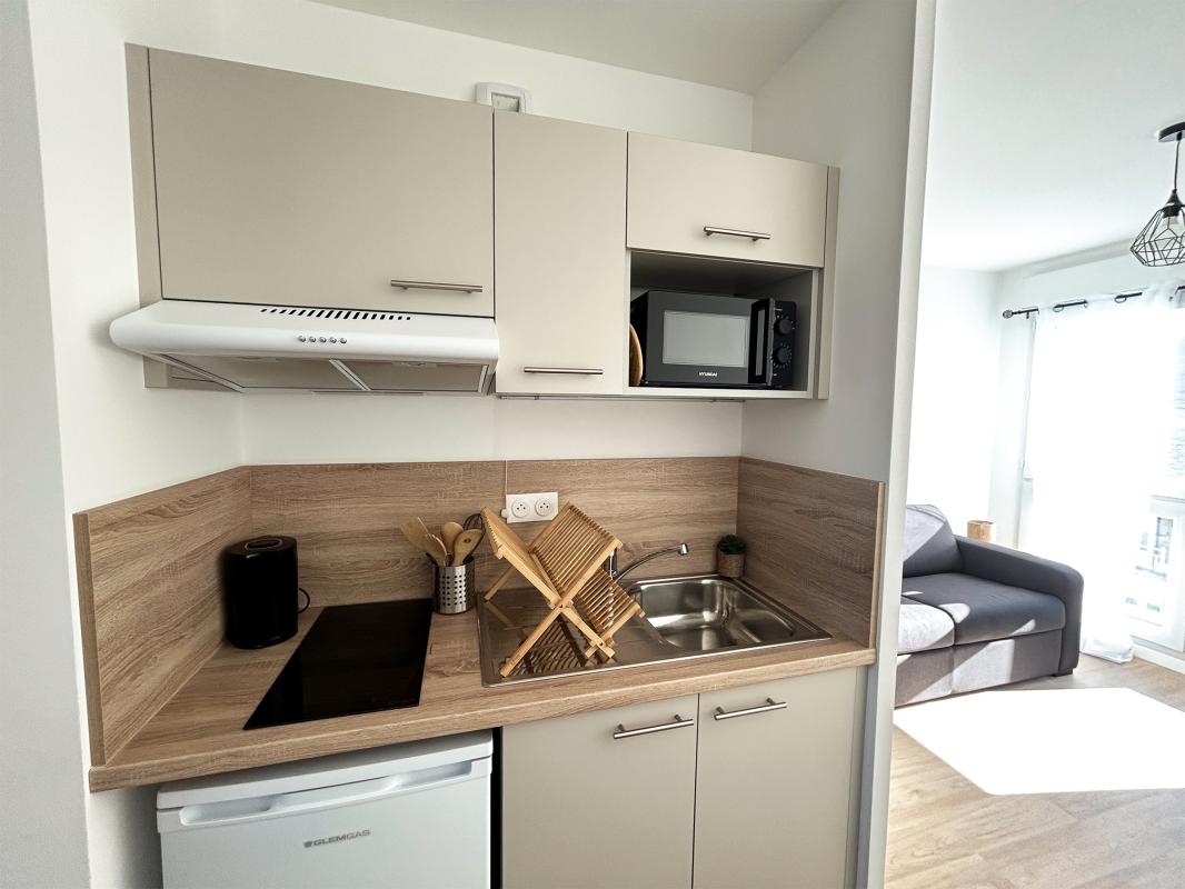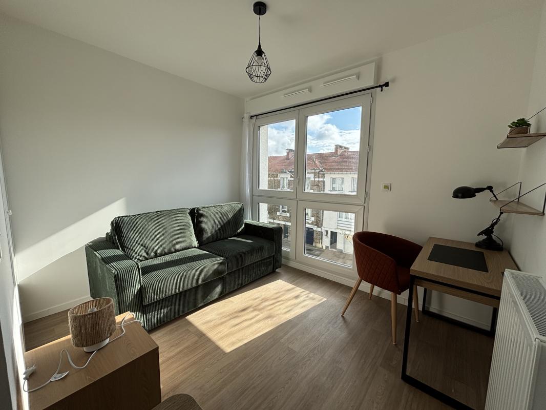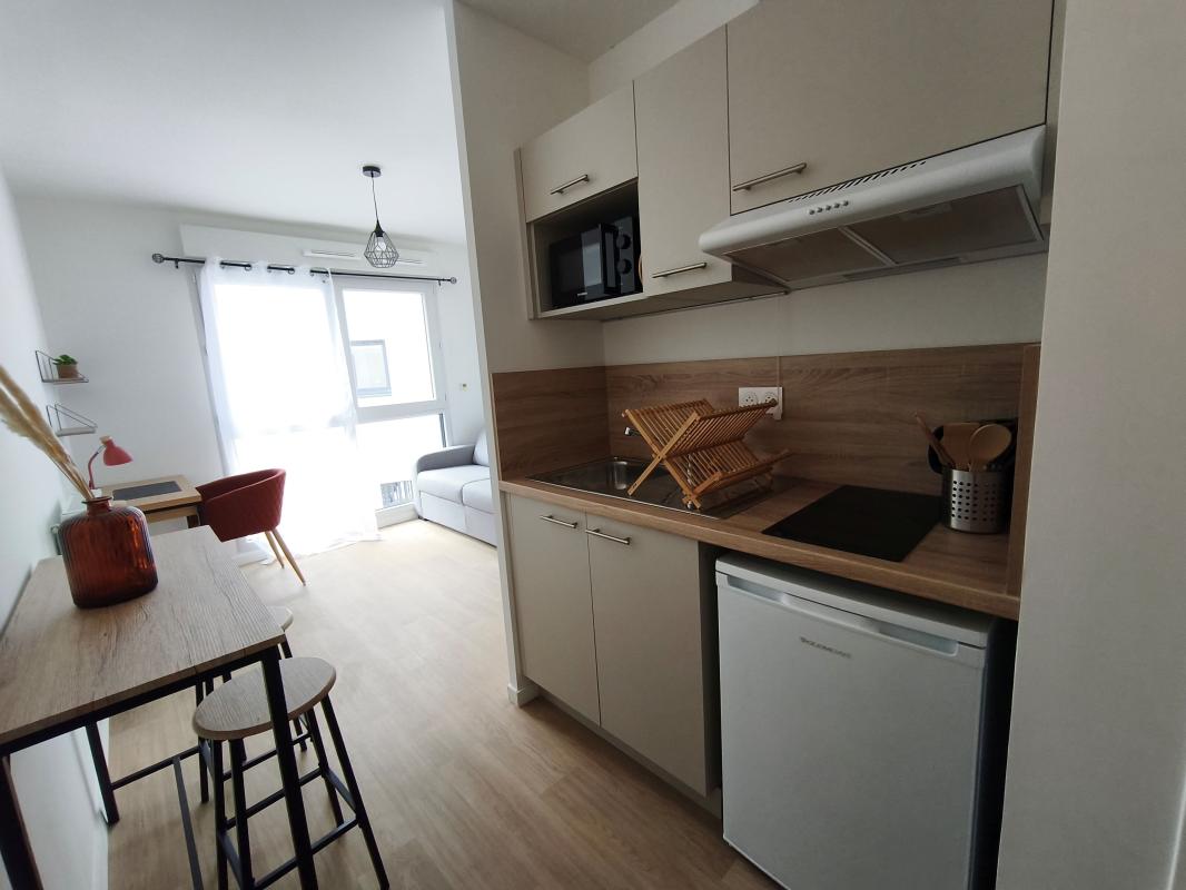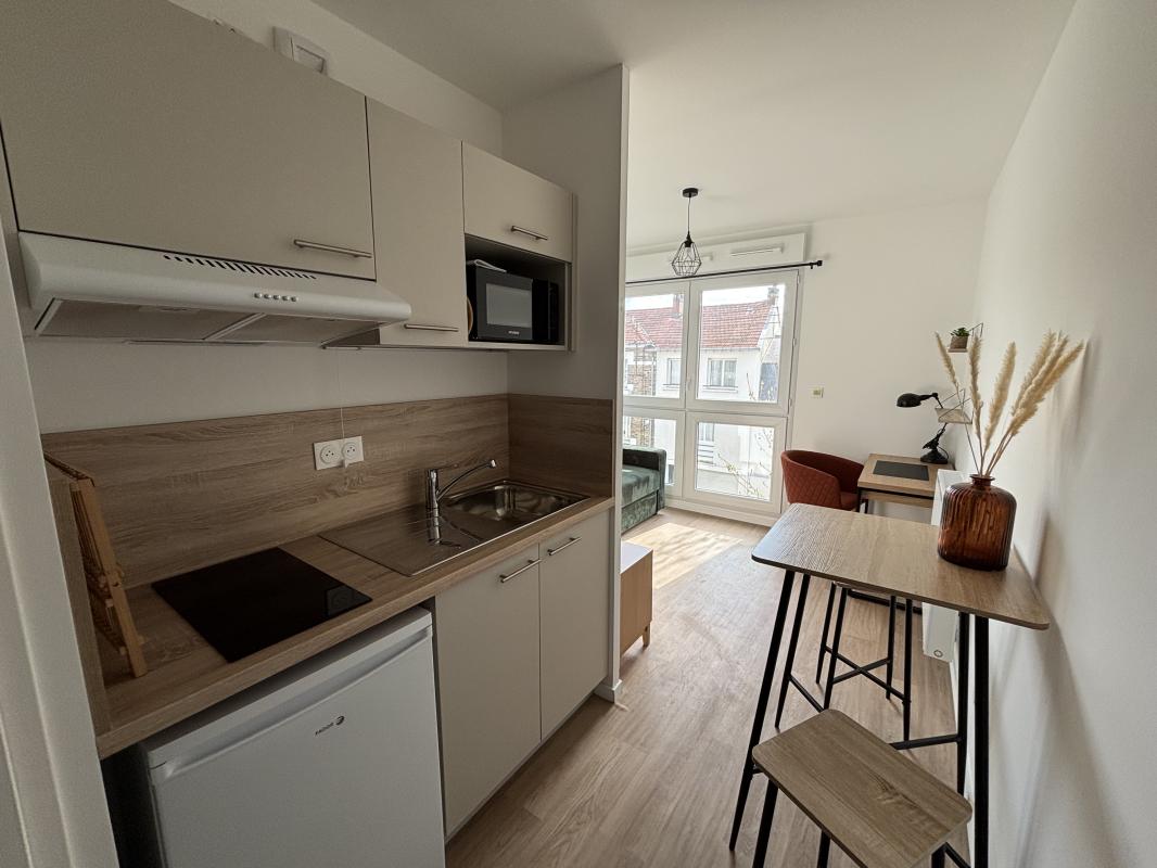 Rue des Folies Chaillou - Charmant appartement type 1 MEUBLÉ de 33,27m² situé au 1er étage avec ascenseur et comprenant : une entrée avec placard, un séjour de 19,64m² donnant sur balcon, une cuisine aménagée et équipée ...