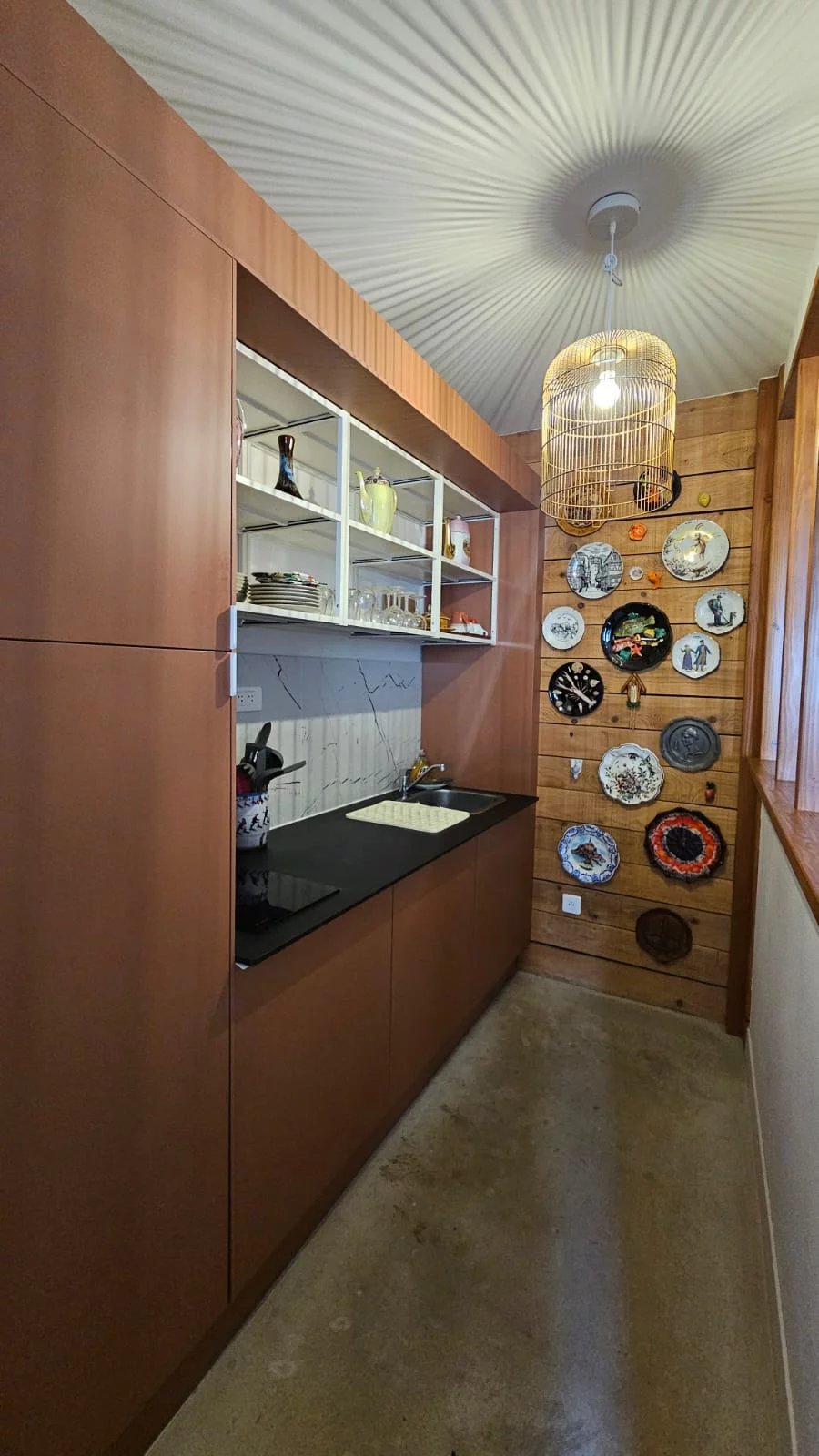 D’une cuisine équipée (réfrigérateur/congélateur, plaques cuisson, micro-ondes, four, hotte)