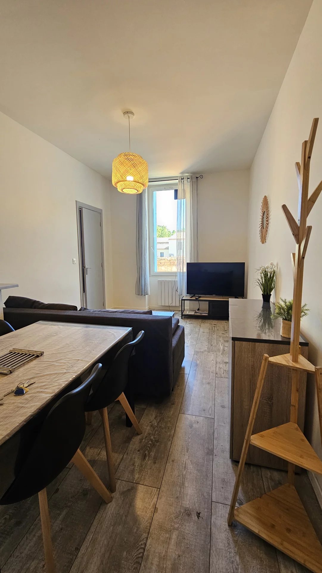 Appartement 2 pièces de 38,77 m² situé à Narbonne, au premier étage sans ascenseur, dans un immeuble ancien entièrement rénové à neuf tout en conservant le charme de l'ancien.