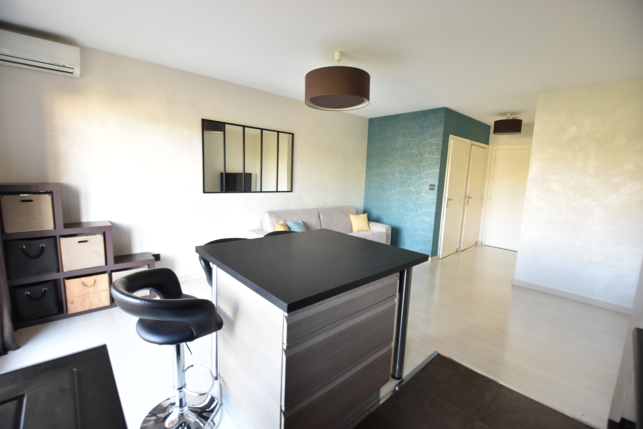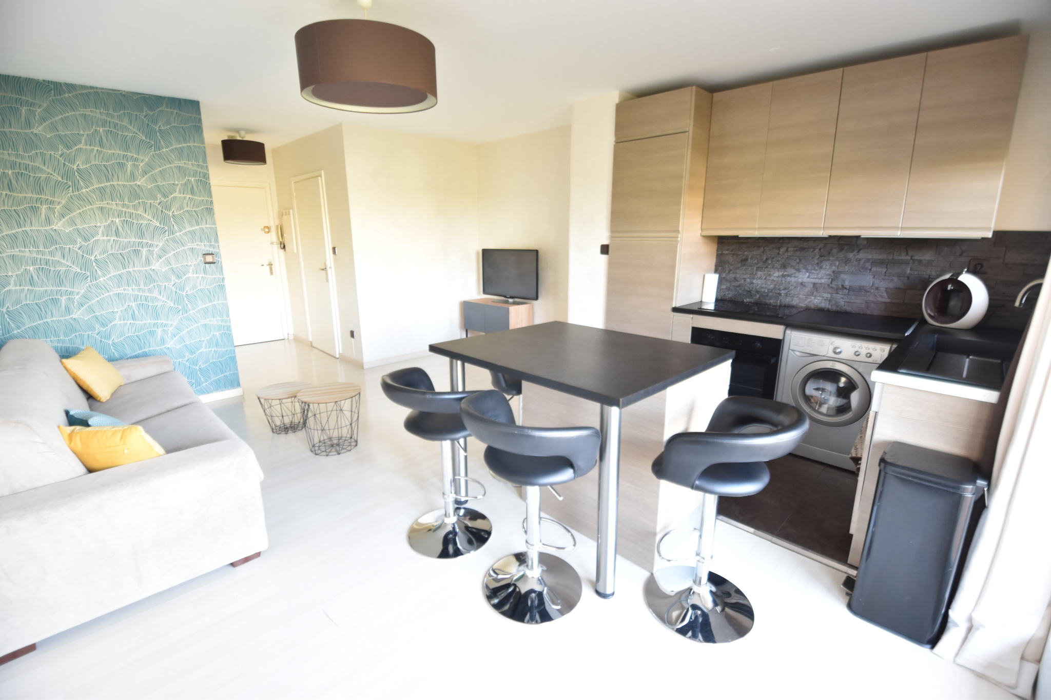 Studio meublé de 30m2. Comprenant : une entrée, un séjour avec cuisine aménagée et entièrement équipée (plaque de cuisson + hotte aspirante + four + la...