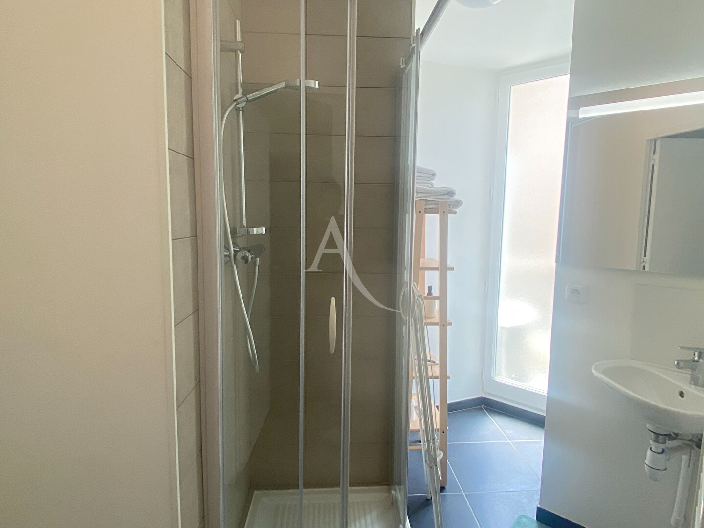 Joli studio meublé, composé d'une pièce à vivre avec cuisine ouverte, une salle de douche avec WC et un balcon. CLIMATAISATION réversible.
