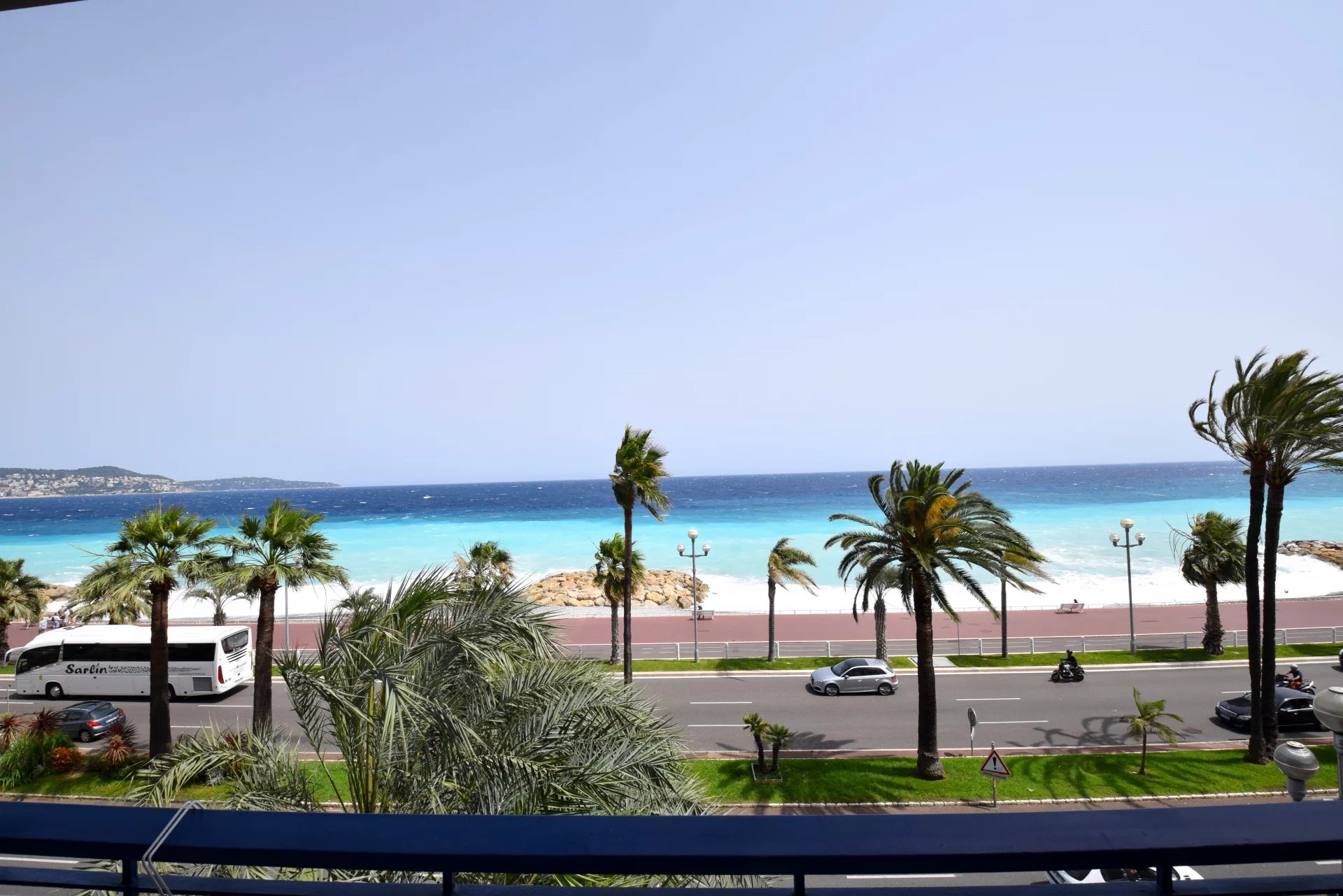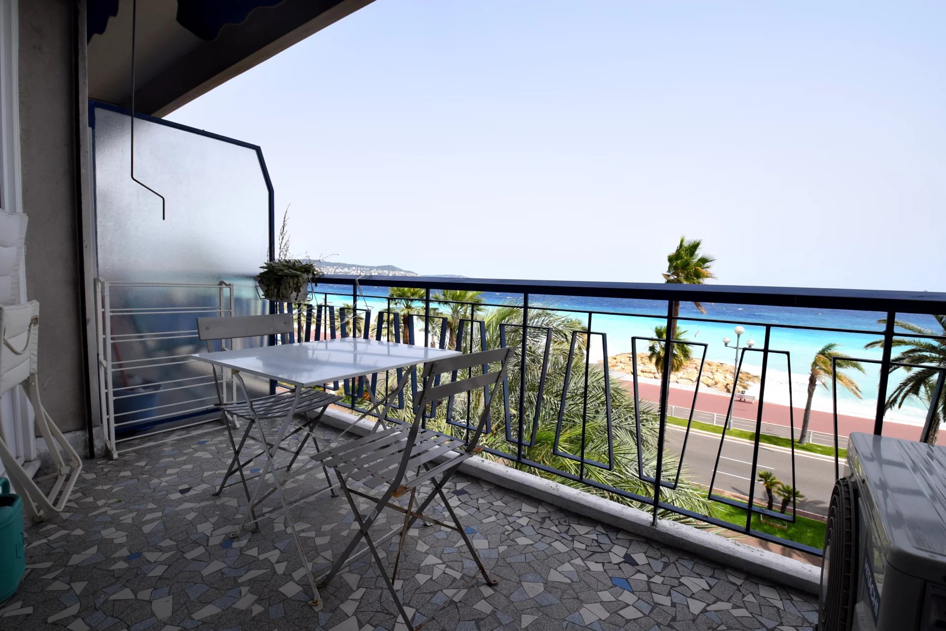 249 Promenade des Anglais : Studio 27,26m² en étage avec ascenseur d'un bel immeuble en front de mer, pleine vue mer. Grand balcon. Cave. Tout collectif.