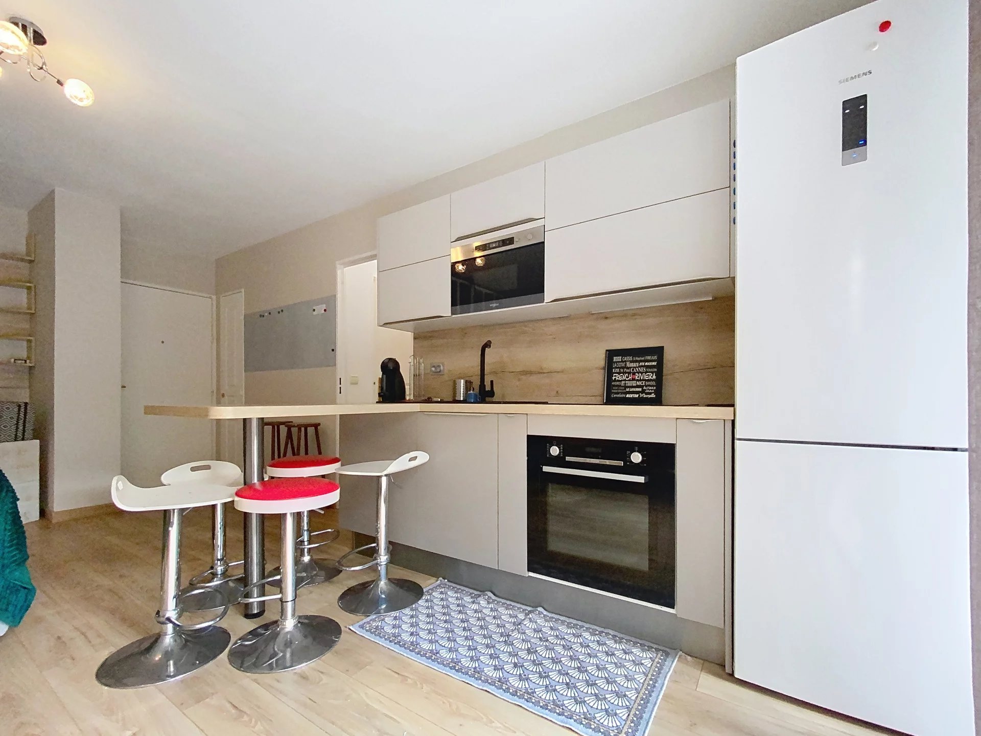 Dans un immeuble bien entretenu, beau F1 rénové, bien agencé, composé d'un séjour avec un coin cuisine entièrement...