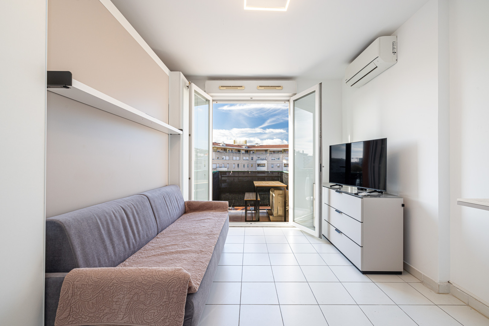 Nice Saint Roch, Appartement meublé de type F1, composé d'un hall avec placard, salle douche/wc, Grand séjour avec balcon/terrasse, cuisine séparée (et accès au même balcon/terrasse)