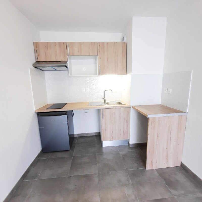 Proche du site Hoche de l'Université de Nîmes, de l'Ecole supérieure du professorat et du centre hospitalier des Fransiscains. Agréable T2 composé d'une entrée, d'un séjour avec cuisine équipée (évier inox, plaque 2 feux, hotte, meuble...