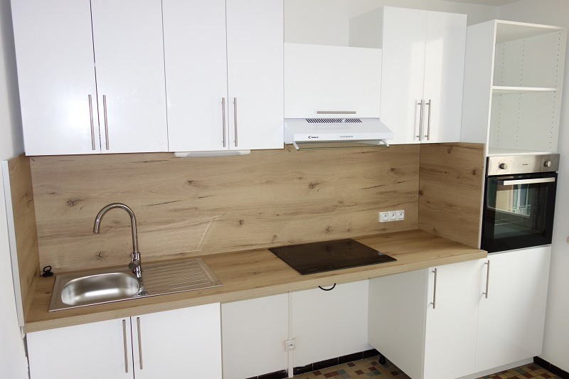 Pche du site Hoche de l'Université de Nîmes, de l'Ecole supérieure du professorat et du centre hospitalier des Fransiscains. Agréable T2 composé d'une entrée, d'un séjour avec cuisine équipée (évier inox, plaque 2 feux, hotte, meubles...