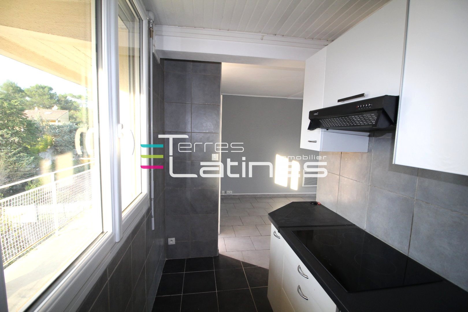 Nîmes Grézan / route de Beaucaire : appartement P2 au 3ème étage d'une résidence sans ascenseur comprenant entrée avec placard, séjour, cuisine aménagée (placards, plaque de cuisson électrique, hotte aspirante), chambre avec placard, salle d'eau/wc, ...