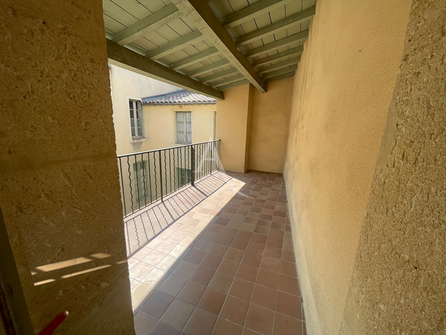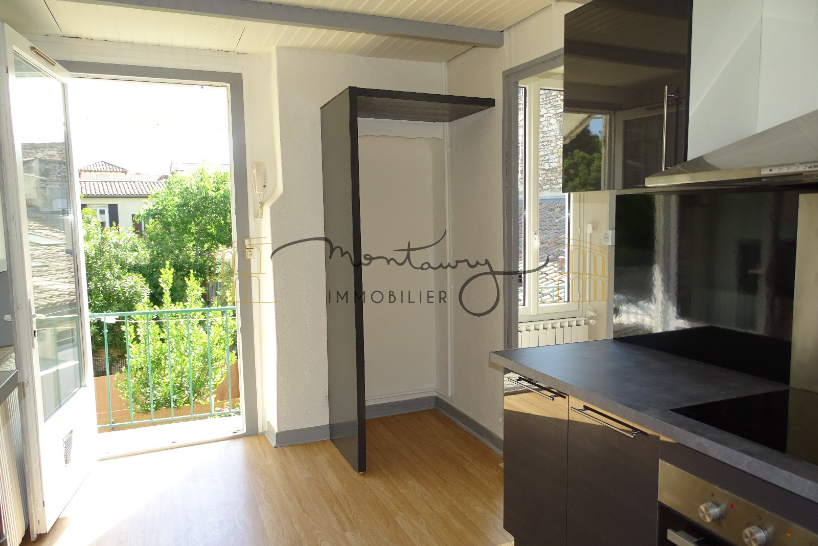 Nîmes place de la mairie. Grand T2 de 63,55m2 comprenant : un séjour lumineux, une cuisine séparée avec plaque de cuisson et hotte aspirante, une chambre avec terrasse de 12,70m2 donnant sur la cour de l'immeuble, une salle de bains, un wc séparé. Libre l...