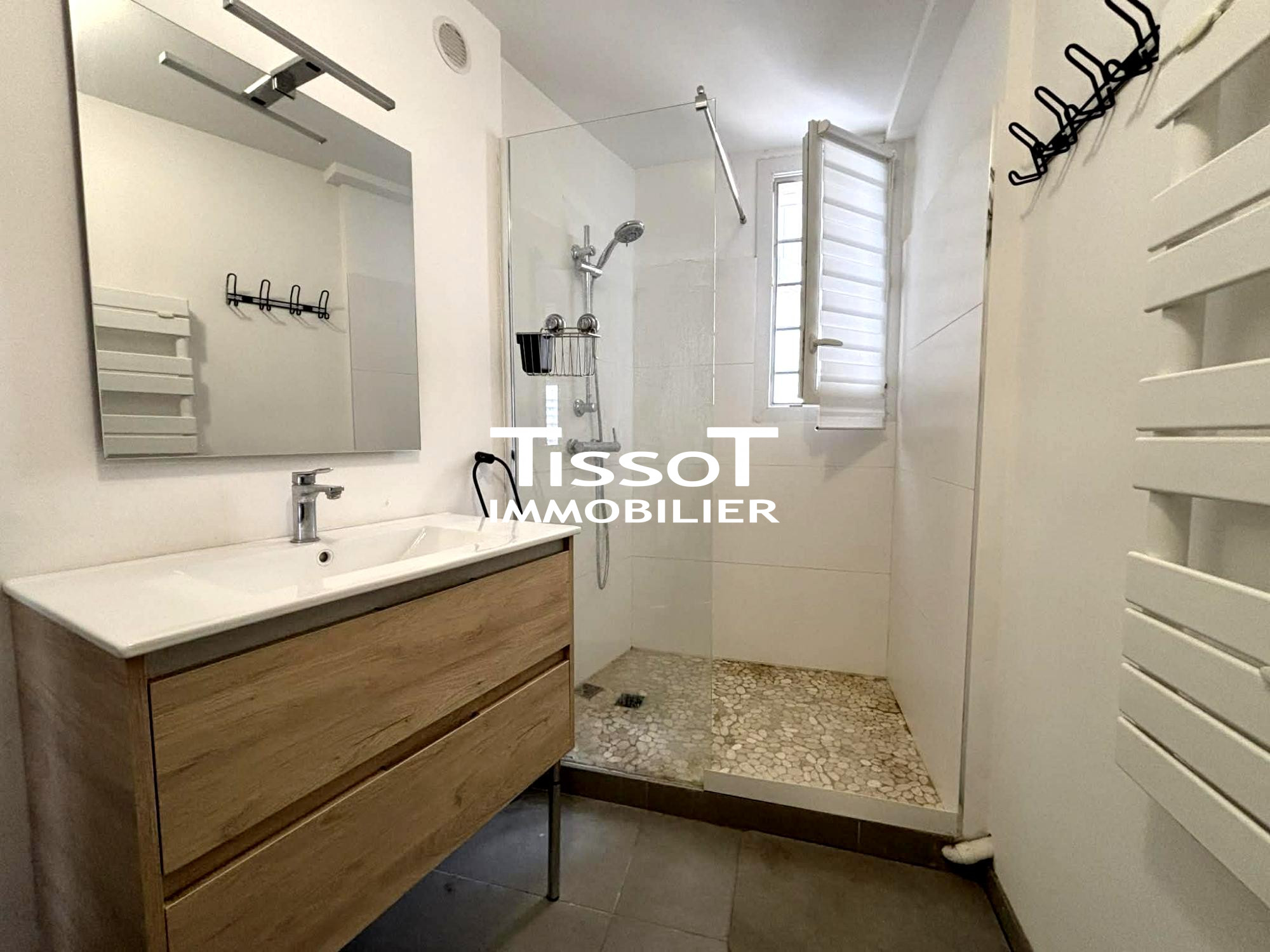 Proche du site Hoche de l'Université de Nîmes, de l'Ecole supérieure du professorat et du centre hospitalier des Fransiscains. Agréable T3 composé d'une entrée, d'un séjour avec cuisine équipée (évier inox, plaque 4 feux, hotte, meubl...