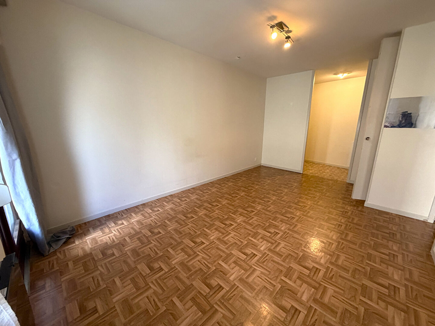 Appartement F2, cuisine semi-aménagée, ouverte sur un séjour lumineux,