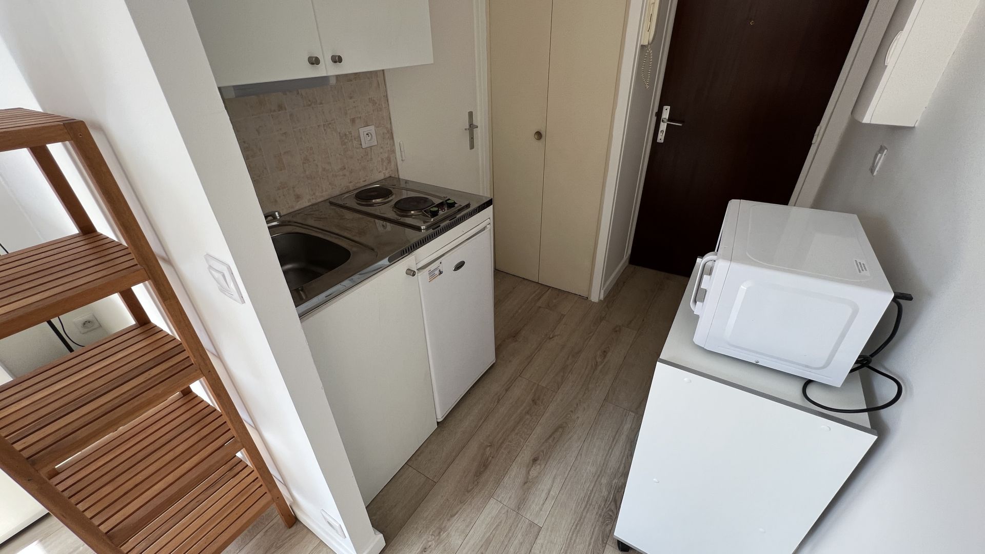 Dans une Résidence en bon état, deux pièces meublés comprenant une pièce principale avec une kitchenette, une chambre et une salle de bains. L'eau froide est incluse dans les charges. - Les informations sur les risques auxquels ce bien est exposé sont dis...