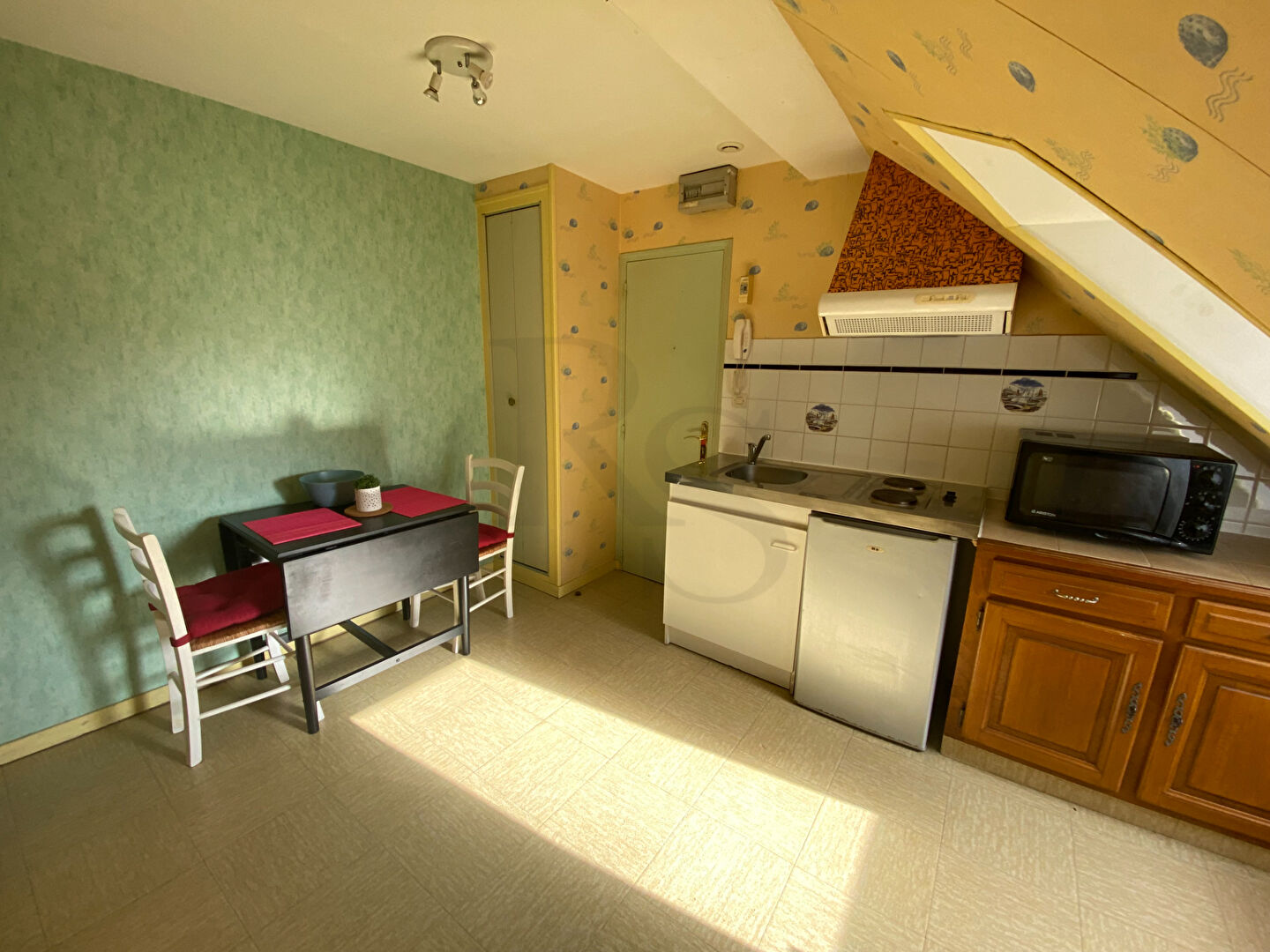 Disponible, appartement F1 situé au 1er étage comprenant une pièce principale avec cuisine ouverte, une salle de bains avec w.c.
