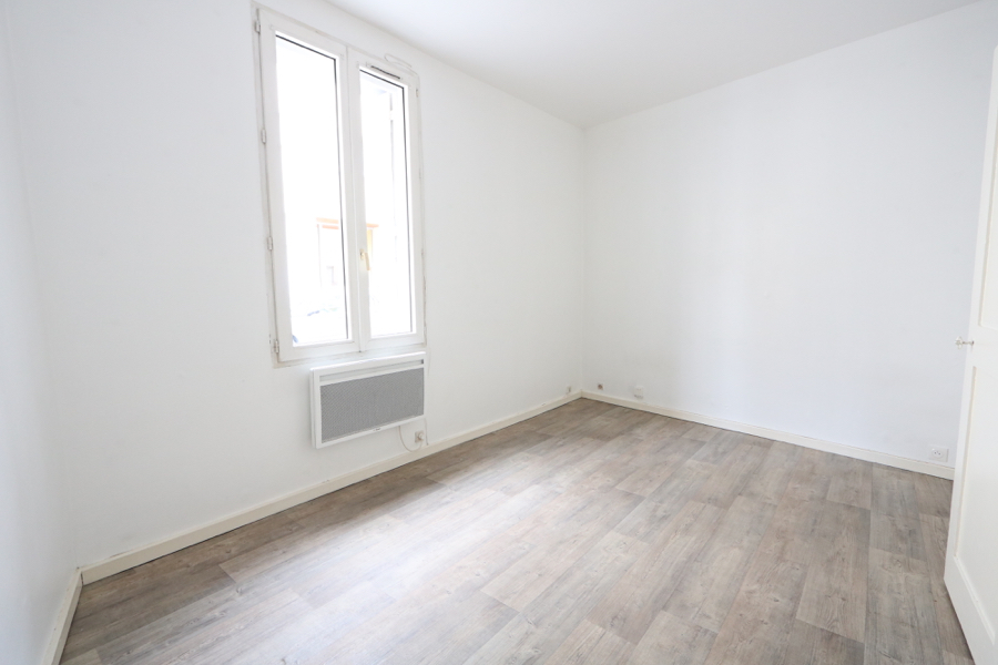 A proximité immédiate des commerces, dans un immeuble calme de trois logements : appartement au 1er étage, en bon état, comprenant séjour avec coin cuisine, dégagement avec placard, chambre, WC et salle de bains.