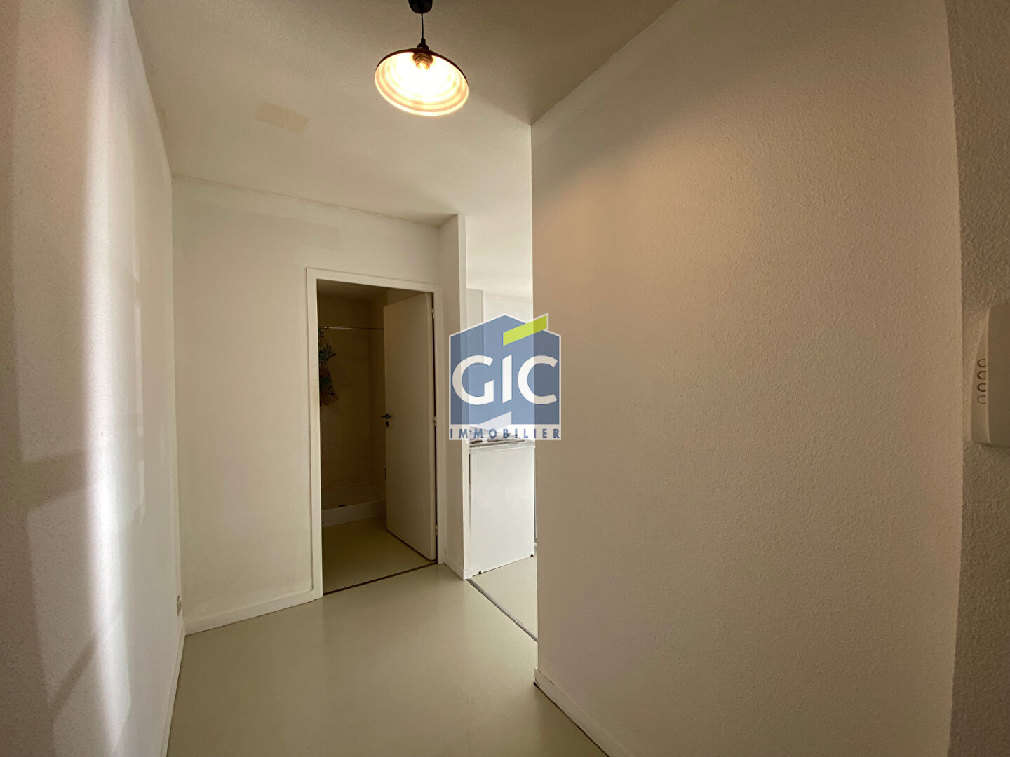 Appartement T2 comprenant une entrée desservant une cuisine aménagée, un séjour, une chambre, une salle d'eau et un WC séparé.