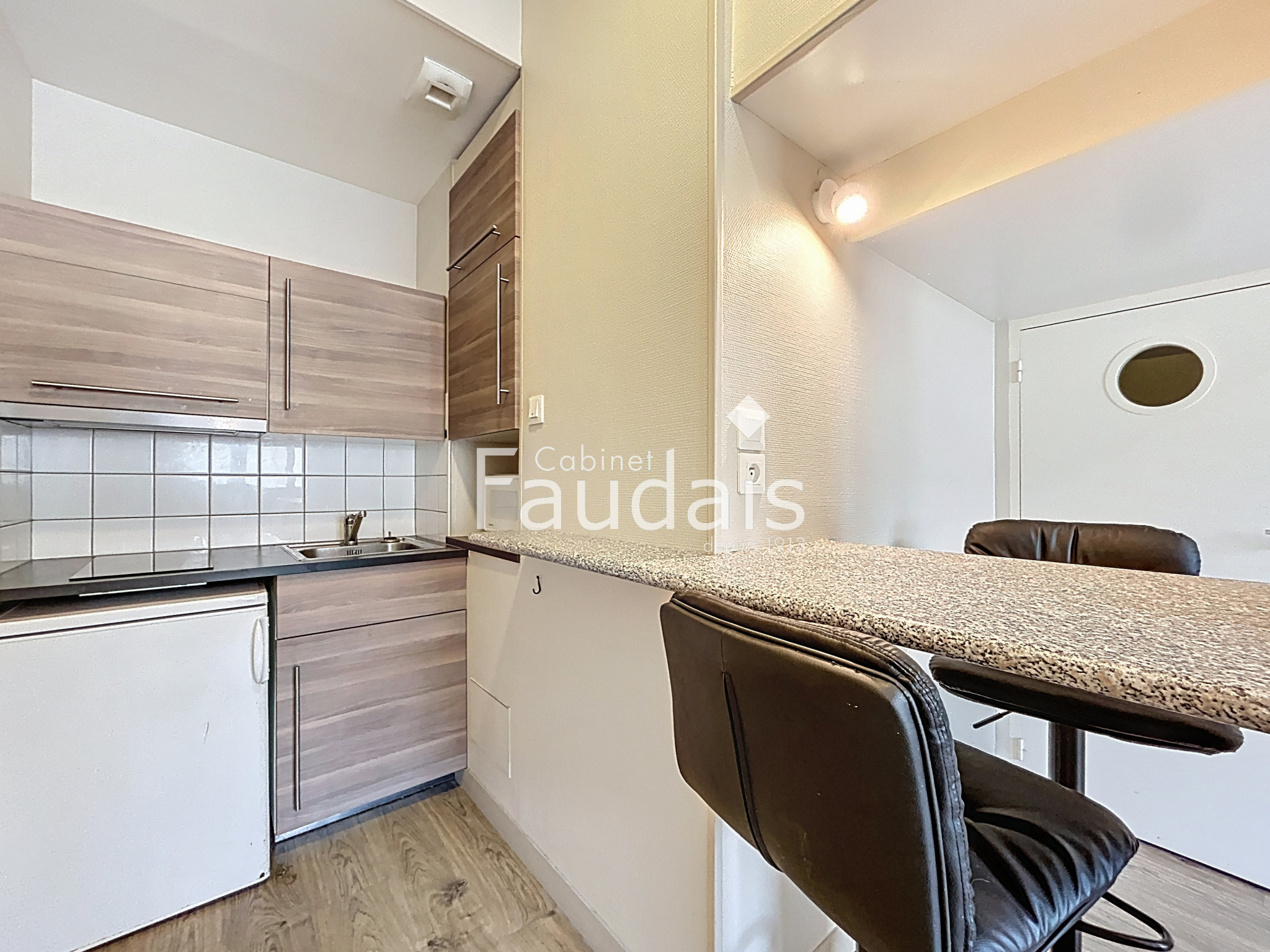 Quartier Montsort - F.1 BIS : pièce principale, cuisine aménagée et équipée : éléments, plaque vitrocéramique, frigidaire, chambre, salle d'eau . Chauffage individuel Libre